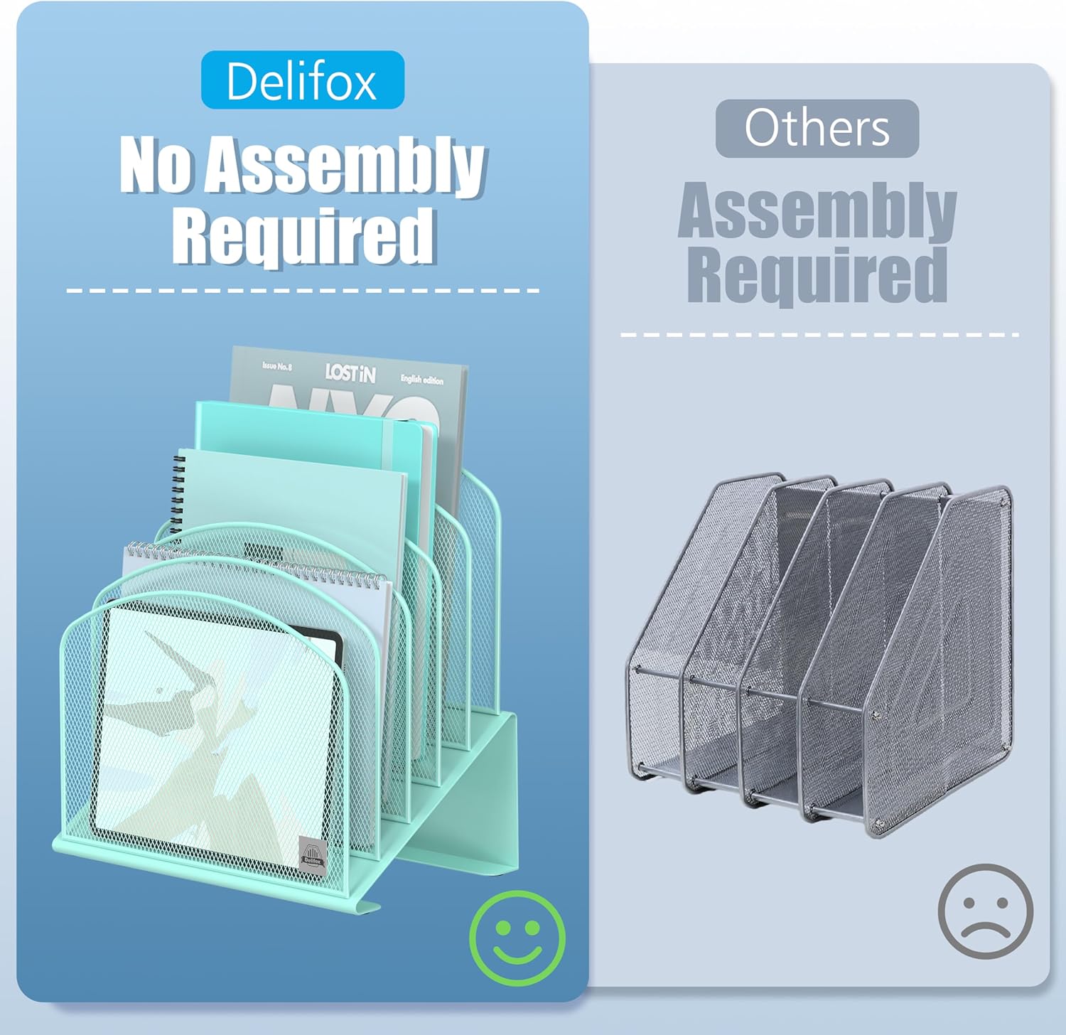 - ▶ SUFFICIENT SPACE FOR STORAGE. Delifox 5-compartment desktop file organizer is large enough to hold and classify many document or papers so as to eliminate worry of document run-off and keep track of files, folders, and other important papers