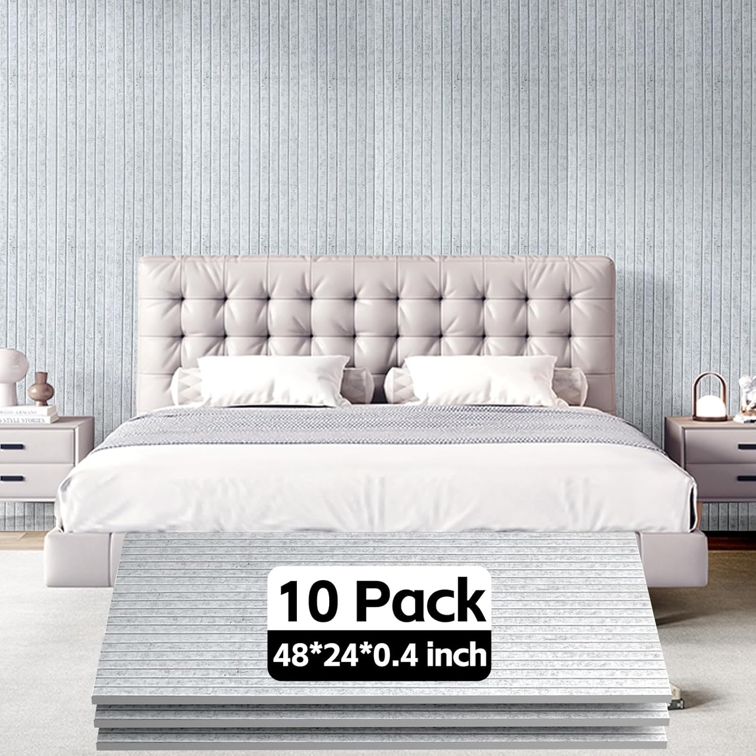 10Pack Large Acoustic Panels, 48x24x0.4 inch Sound Proof Panels for Walls, Self-Adhesive Sound Dampening Wall Panels, Noise Absorbing Decorative Wall Panels, Wall Noise Blocker for Home Studio (Grey)