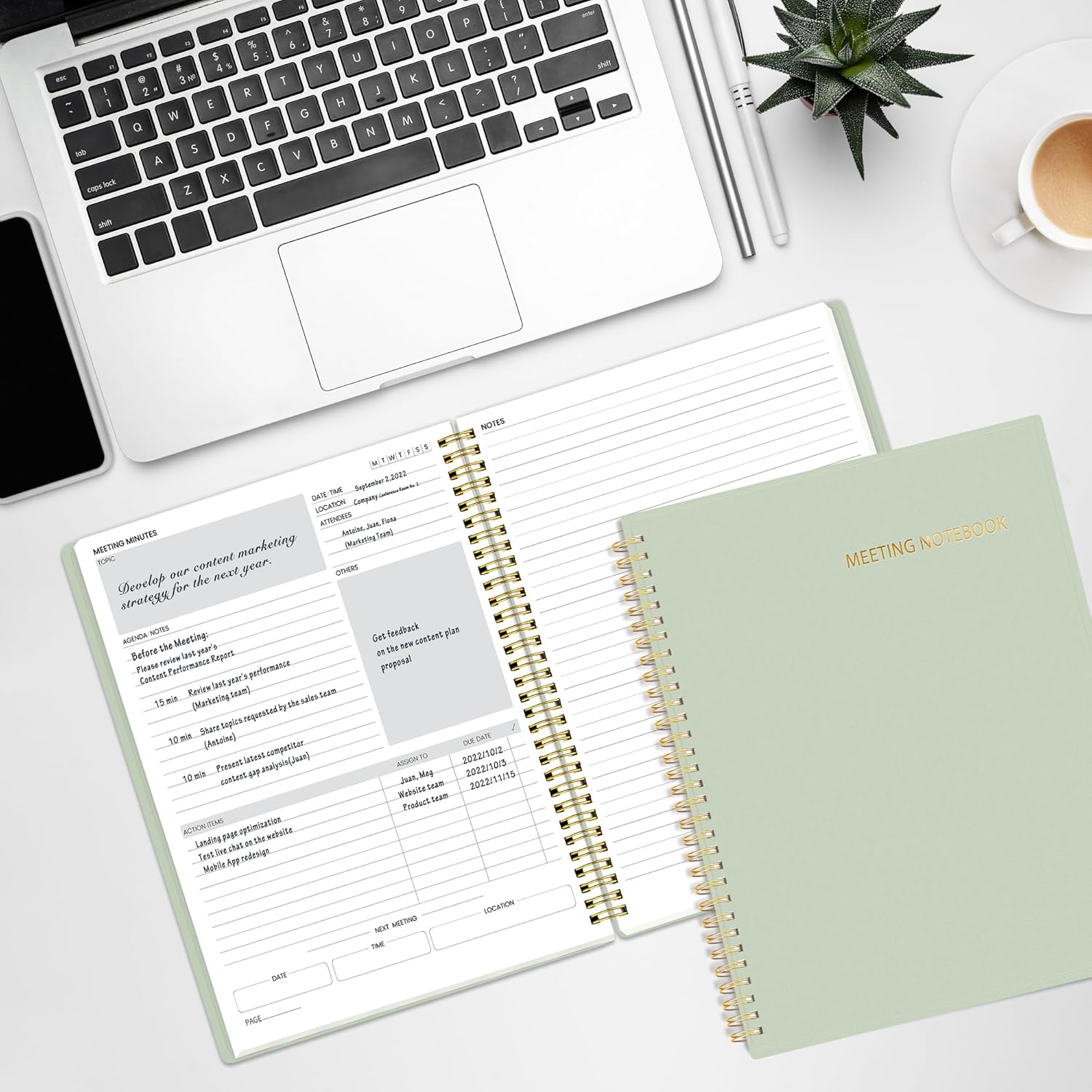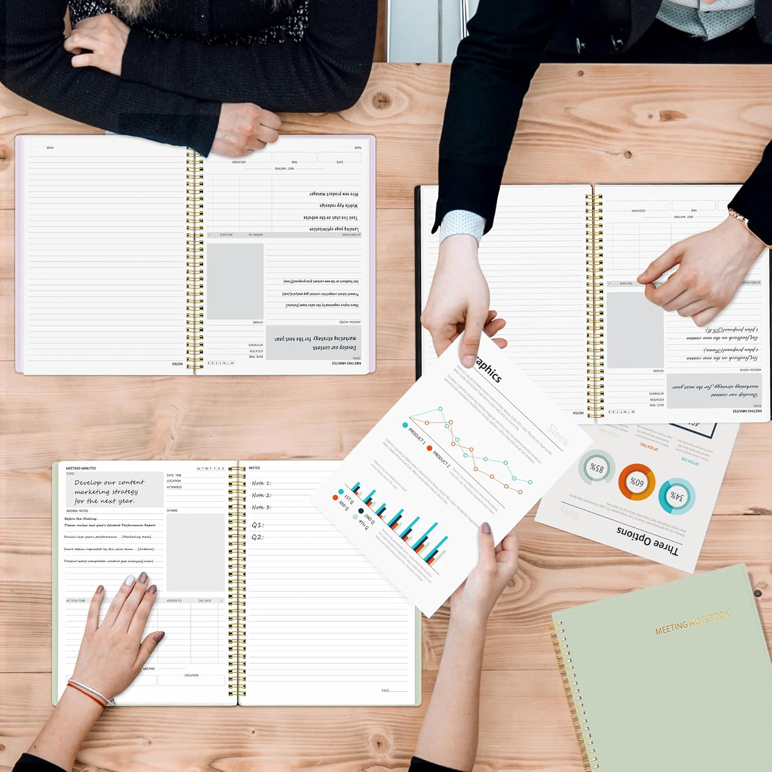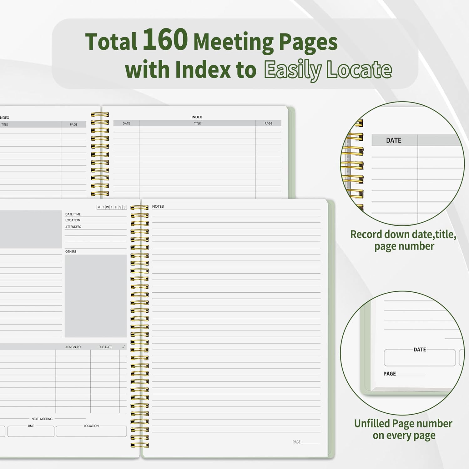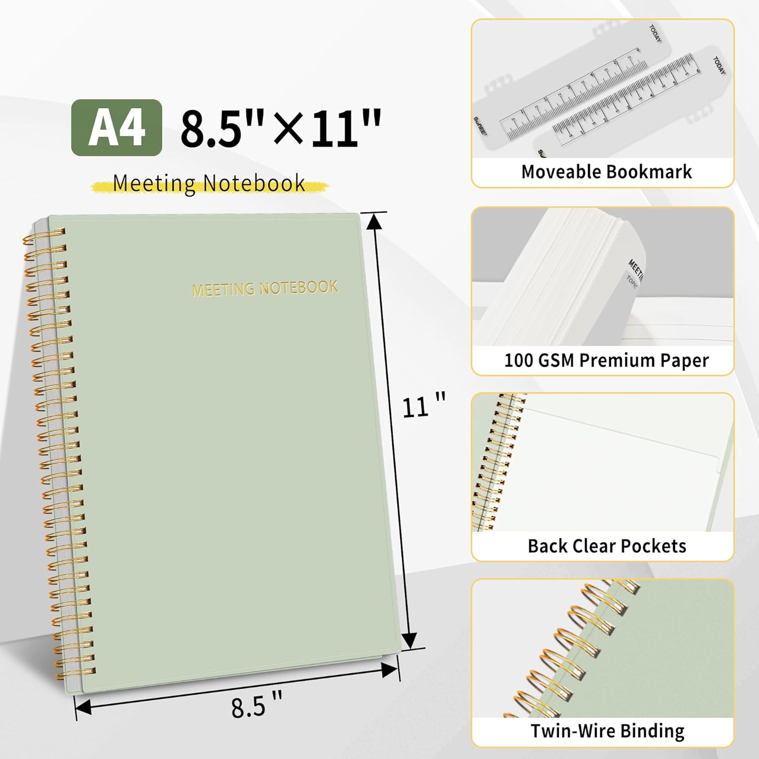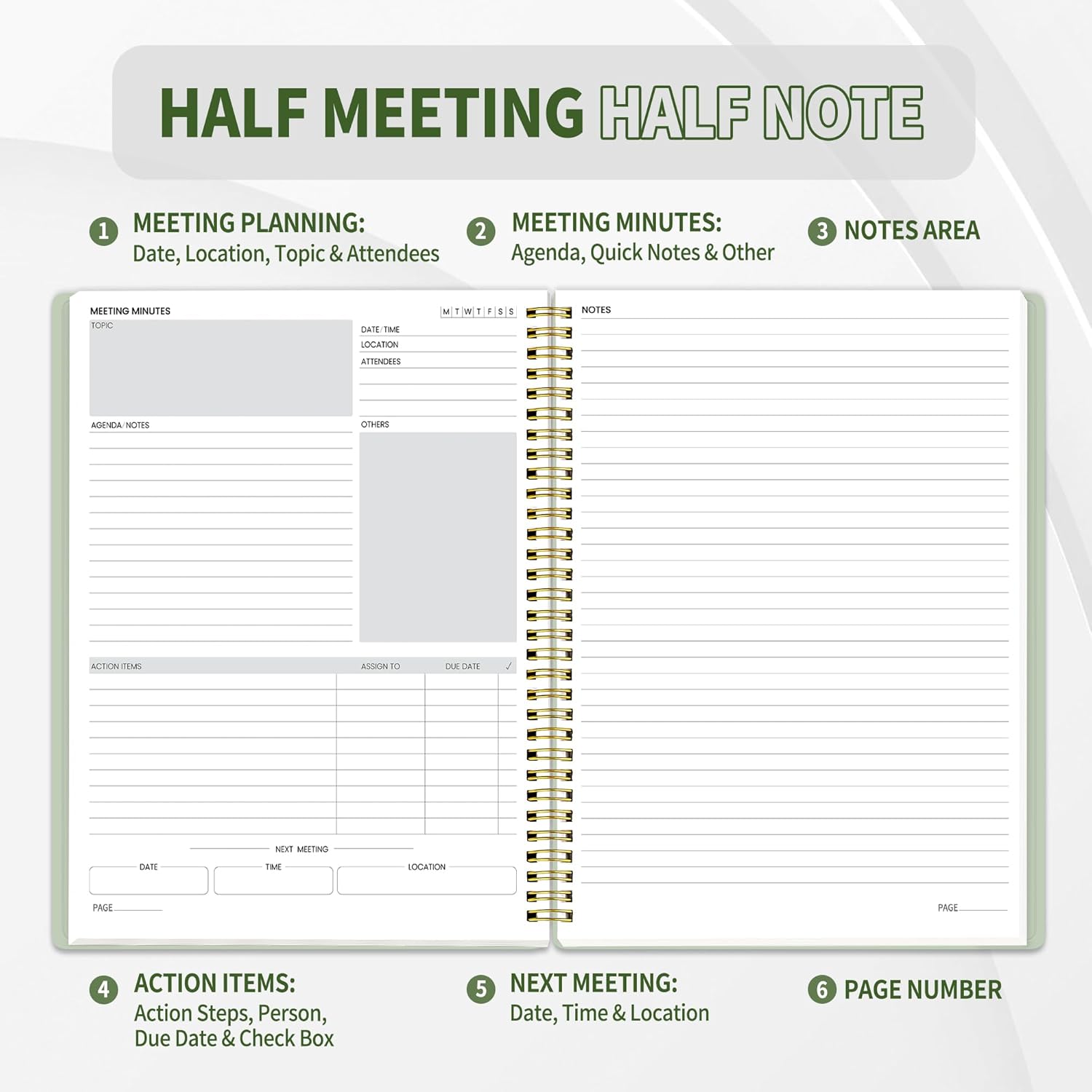 SUNEE Half Meeting Half Note - 8.5"x11" Professional Notebooks for Work - 160 Pages, A4 Size Project Planner, Spiral Meeting Agenda/Minutes Organizer for Women Men, Note Taking, Office & Business