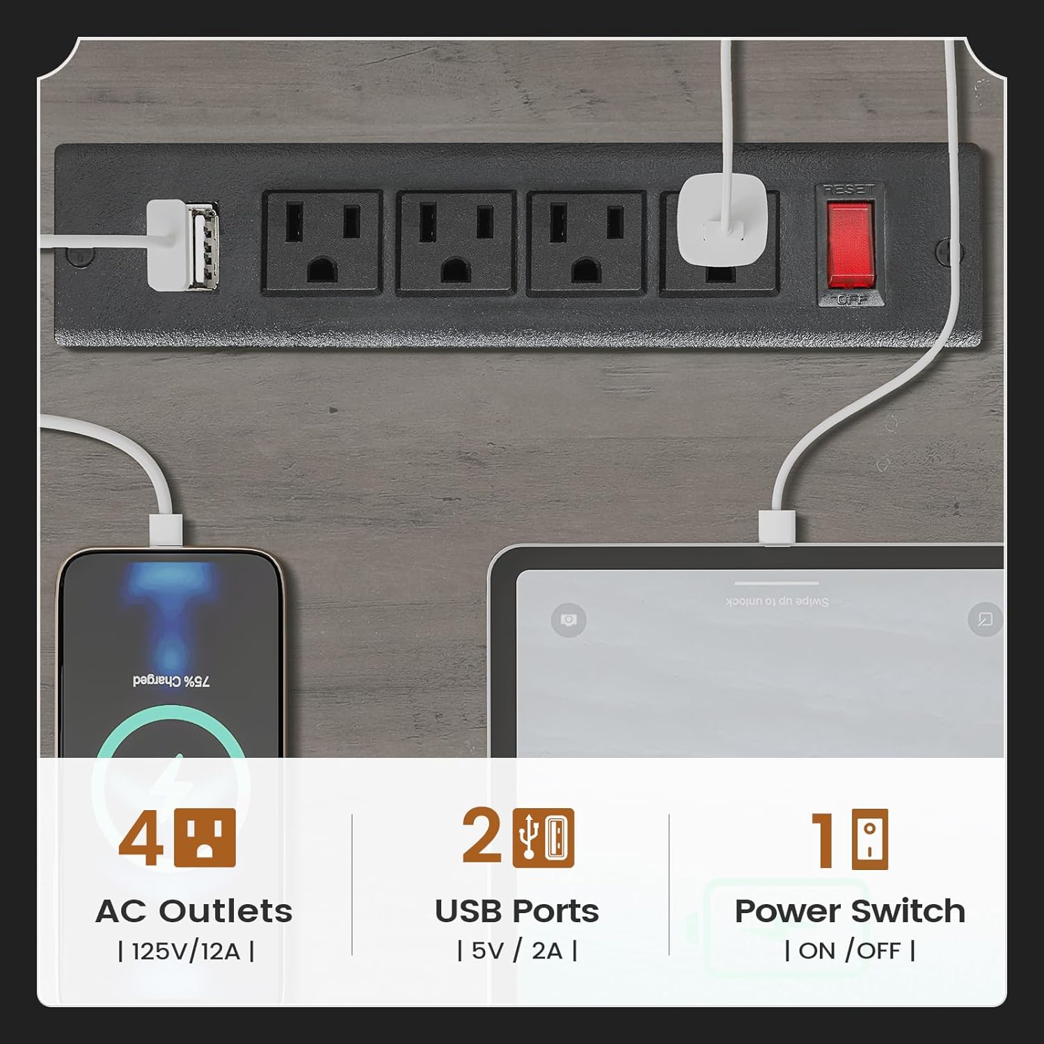 - 【Power Outlets】This computer desk is equipped with 4 AC outlets, 2 USB charging ports to provides convenience for charging your gaming gear, tablet, printer or phone. The switch is convenient and safe to turn off power, no need to unplug appliances at all times.