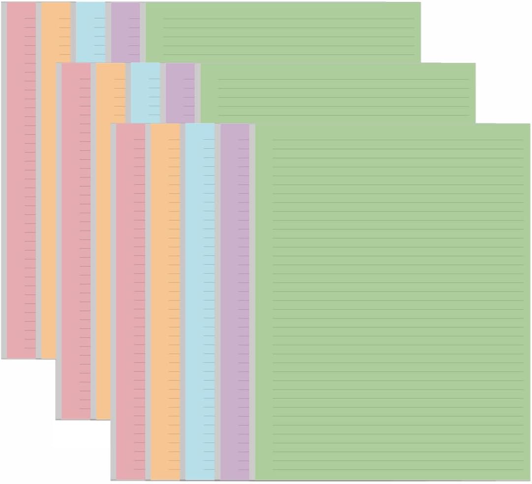(3-Pack) Colorful Unpunched Lined Paper - 300 Sheets/600 Pages Loose Leaf Paper Line Refills, Per Color 60 Sheets, 8.5" x 11"