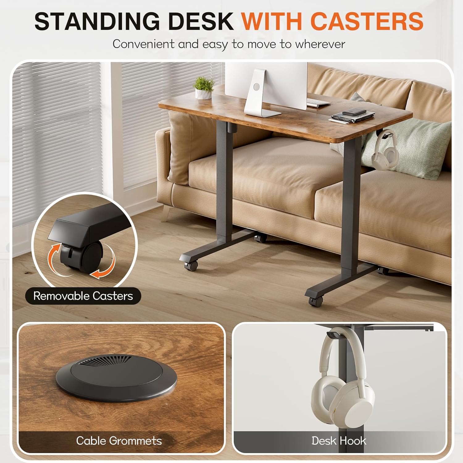 - With Removable Caster: Standing desk are equipped with additional detachable casters for easy mobility to wherever you want, while the detachable attributes do not hinder stable daily use, enjoying the pleasure of use.