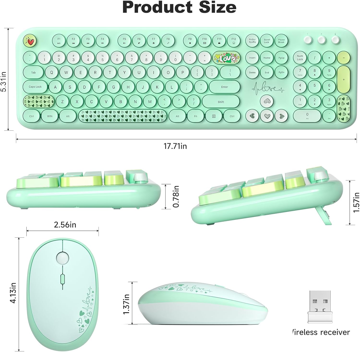 MOFII Wireless Keyboard and Mouse Combo, Cute Full Size Retro Typewriter Keyboard and Wireless Mouse, 2.4GHz Set for PC/Desktop/Laptop/Windows (Green Colorful)