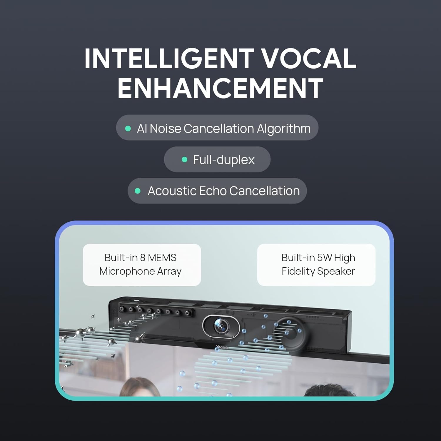 Yealink Video Conference Camera, 4K Webcam, 120° Ai Auto Framing, 8 Microphone Arrays & Speaker Tracking, Ai Noise Cancellation Teams Certified, Meetingbar A10 All-in-one Conference Room Camera System