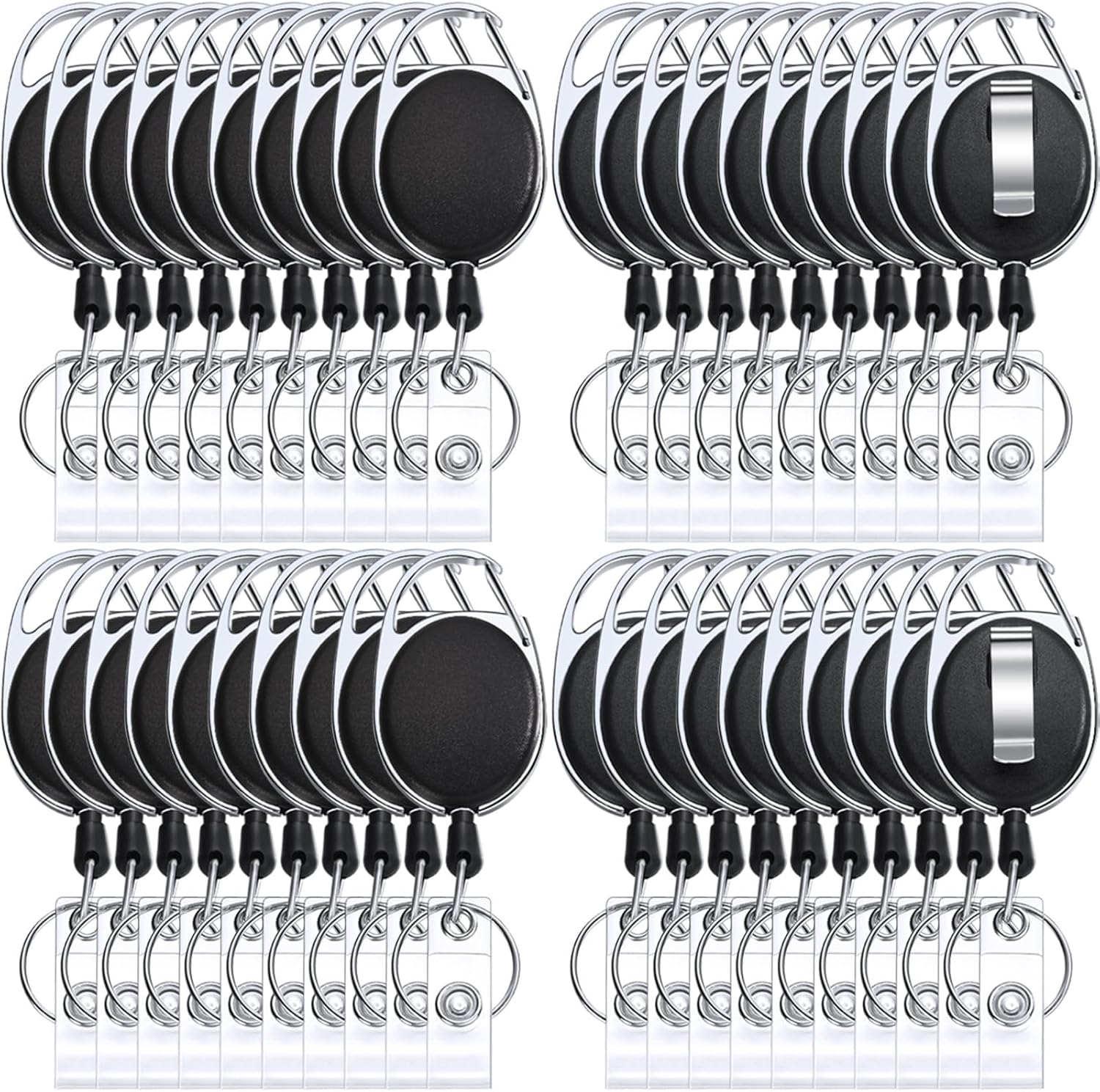- Package: you will get 30 packs of retractable badge clips, featuring clip, stainless steel key ring, vinyl snap strap and plastic cover, clip attachment for effortlessly and quickly fastening to belt loops, straps, backpacks, bags and more, allow a quick and easy way to scan or swipe your badge