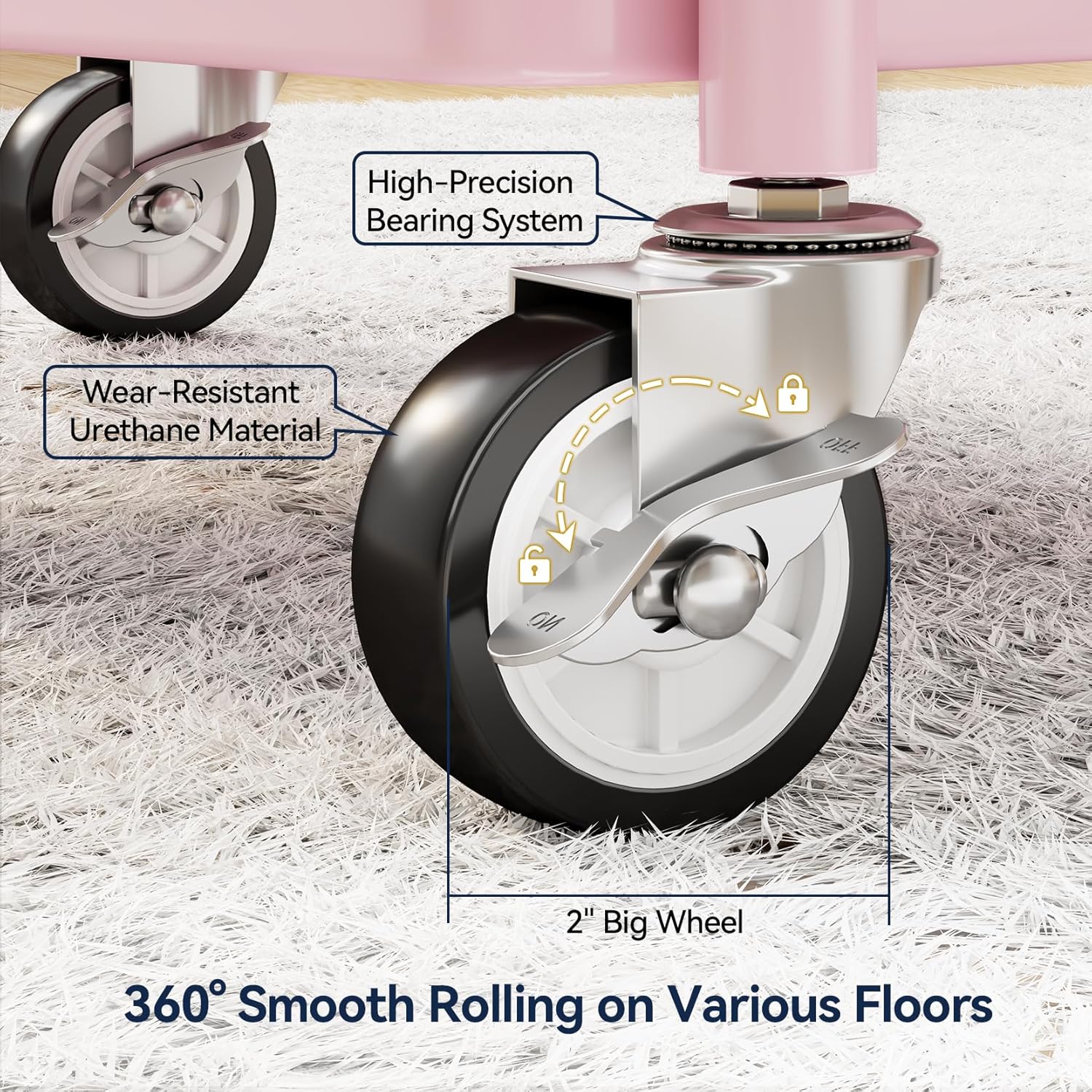 - Effortless Movement, Stable Under Heavy Loads: A solid and finely engineered structure paired with large, premium heavy-duty wheels ensure this metal rolling cart with wheels glides smoothly and stays steady even when loaded with heavy items