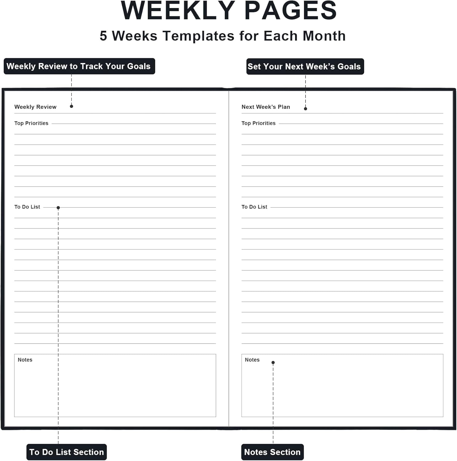 - 30 Weeks Undated Monthly Planning – Daily Monthly Undated planner, to-Do List, Task tracker together for monthly affairs. Track priorities for each month and use the checkbox as a visual reminder. 30 weeks pages to track daily rituals, it also has section for your week’s top priorities, to do list, notes of the week and weekly review of your wins and how to improve next week.