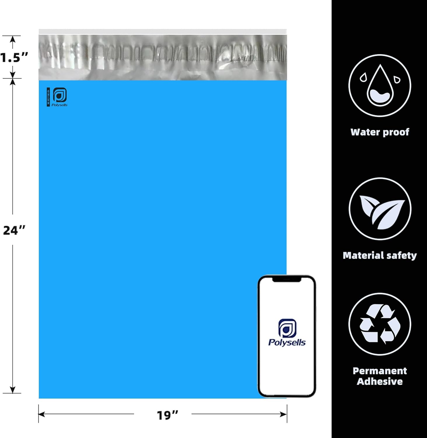POLYSELLS 100 pcs 19x24 Inches Blue Poly Mailers Shipping Envelopes, Strong Adhesive Sealing, Waterproof, and Tear-resistant Postal Mailing Bags for Clothing, Books, and Accessories