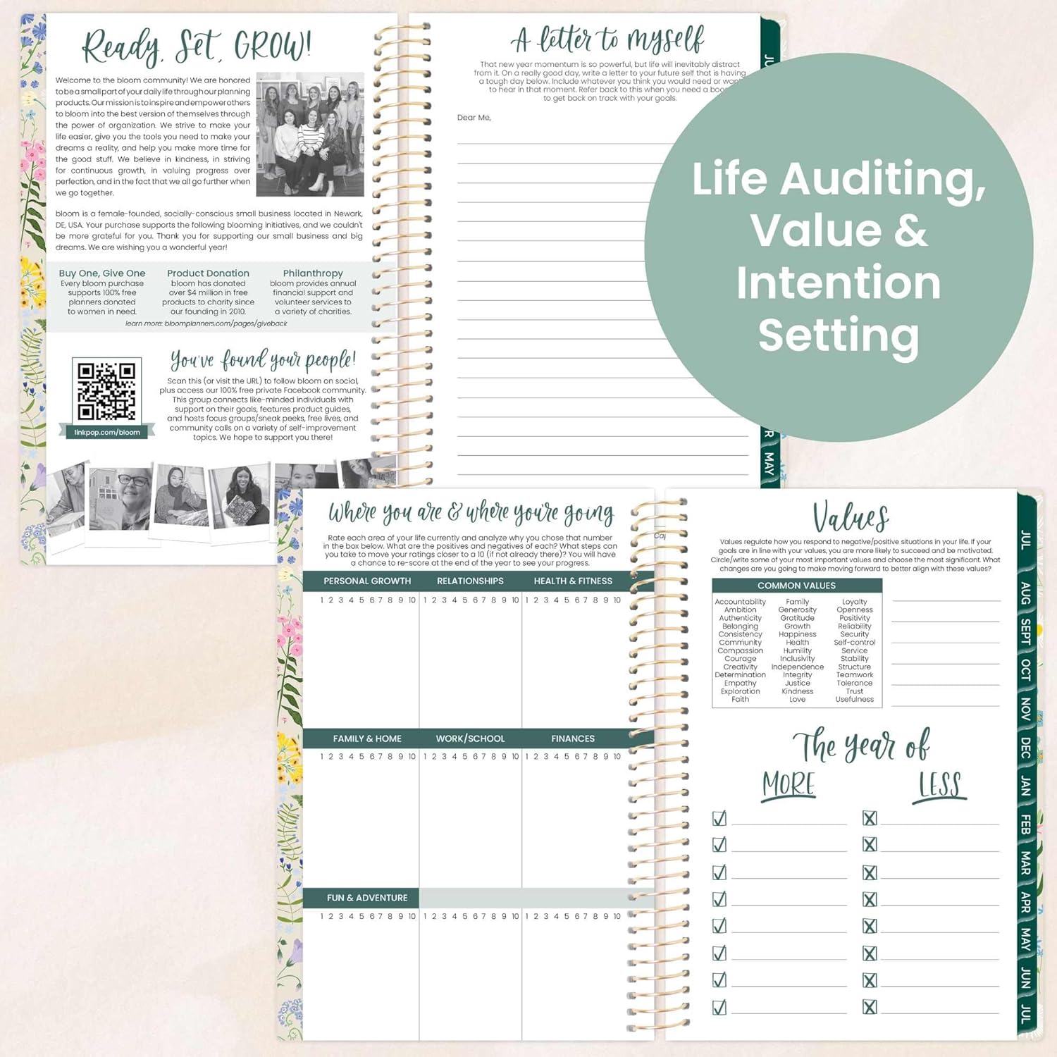 - BONUS ELEMENTS: Packed with life coaching worksheets and inspirational features to help you set and achieve all of your goals for the year: yearly overview, values page, monthly bill tracking, acts of kindness challenges, 9 notes pages, important dates for next year, monthly quotes & more!