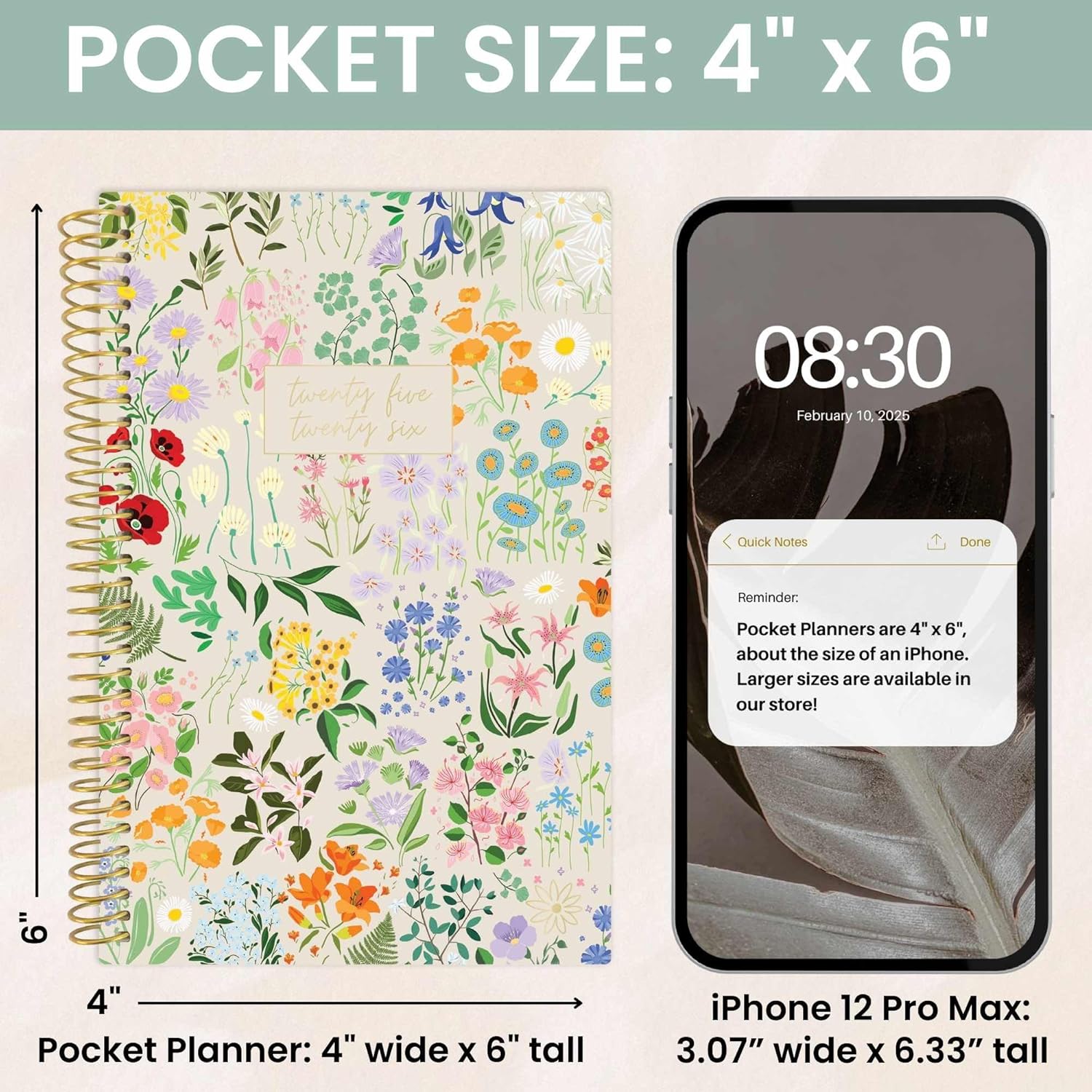 bloom daily planners 2025-2026 Academic Year Pocket Planner (July 2025 - July 2026) - 4” x 6” MINI Weekly Monthly Agenda Organizer & Calendar Book - Garden Party, Beige
