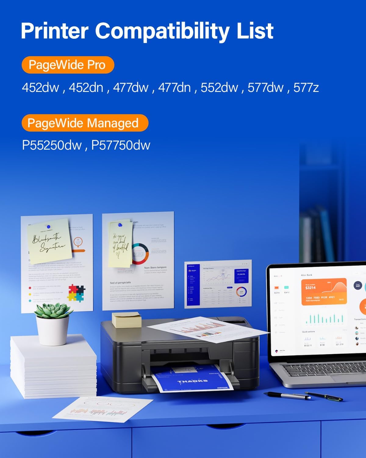 - Compatible Printer Models : Color PageWide Managed P55250dw, P57750dw, PageWide Pro MFP: 477dw, 477dn, 577dw, 577z,, PageWide Pro: 452dw, 452dn, PageWide: 552dw Color PageWide Managed P55250dw, P57750dw, PageWide Pro MFP: 477dw, 477dn, 577dw, 577z,, PageWide Pro: 452dw, 452dn, PageWide: 552dw