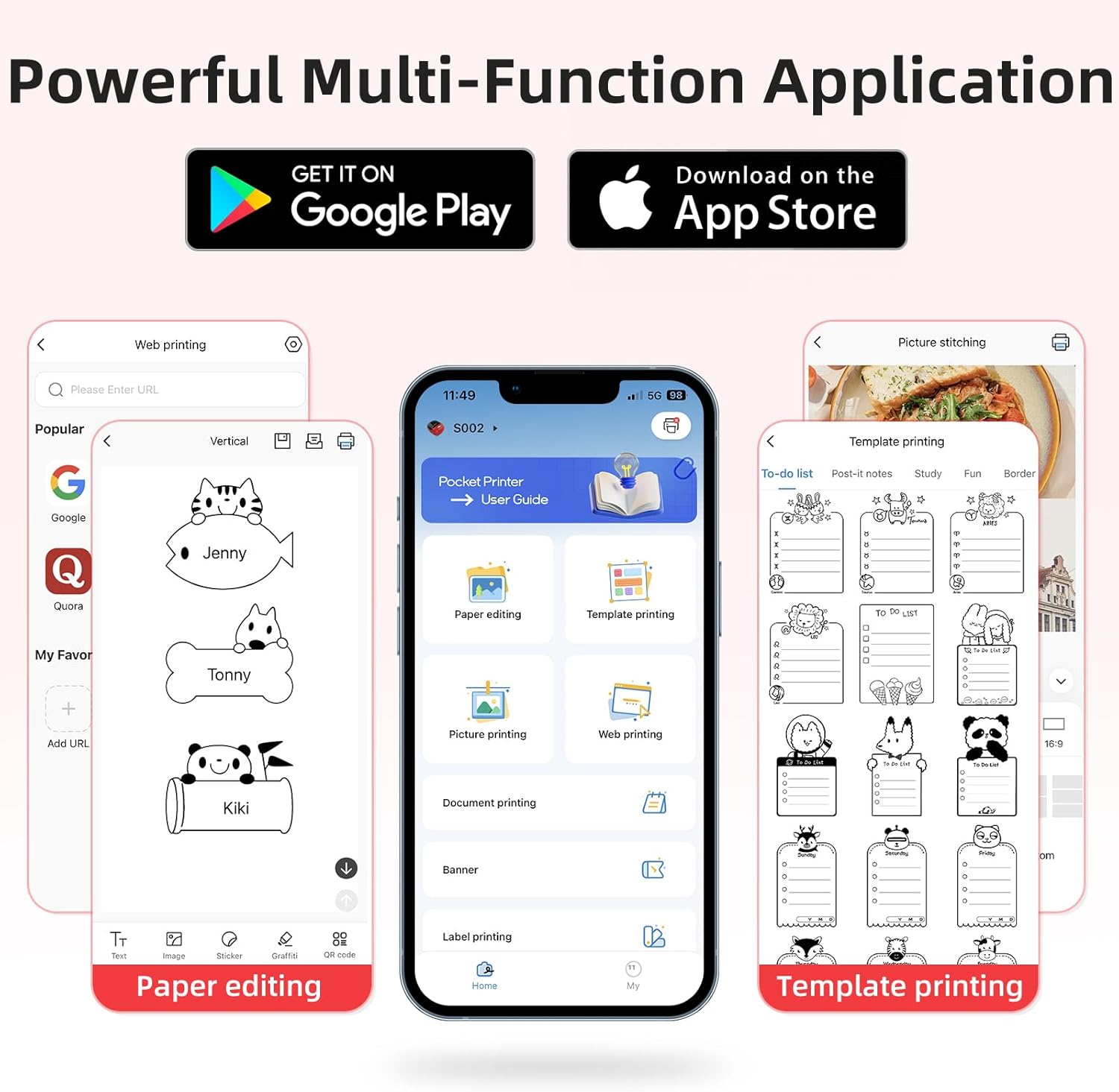 - Wireless Connectivity: This pocket mobile sticker printer is compatible with both Android and iOS devices; It connects effortlessly to your phone via Bluetooth, enabling wireless printing from anywhere; The Snap & Tag app offers a variety of fonts and templates to enhance your productivity in work and study