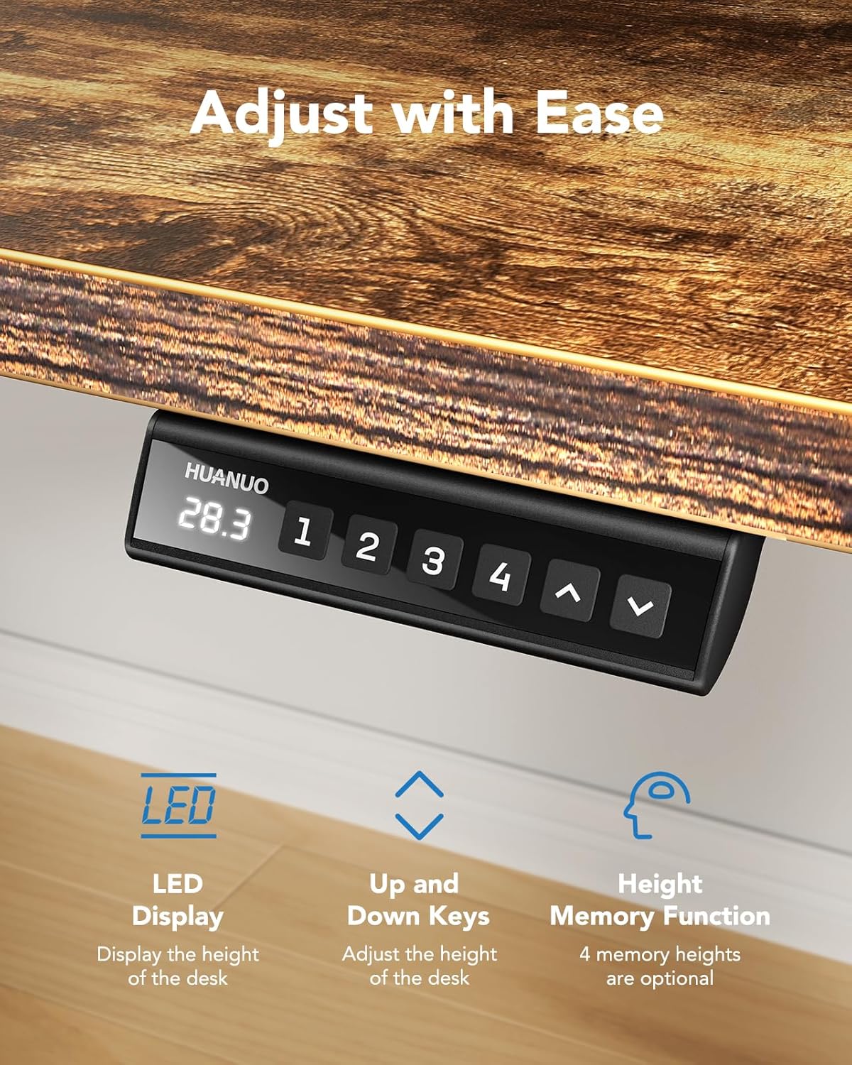 - Intuitive Control Panel: Easily operate the sit stand desk with the LED controller that attaches to the front of the desk. With low-noise operation, you can operate the desk quietly without disturbing your work environment. Stay focused on important tasks without unnecessary distraction.