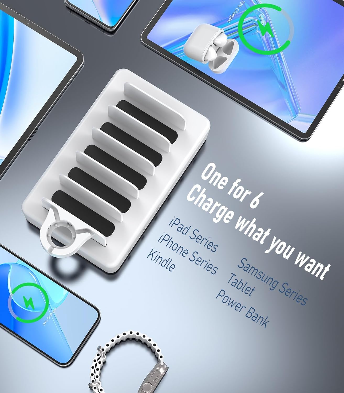 - 【Wide compatibility】The charging station for apple devices is compatible with 1000+ usb devices.Whether you are in school, office, bedroom, desk or bedside table, it can easily charge all your electronic devices at the same time. It is also a perfect gift for family and friends