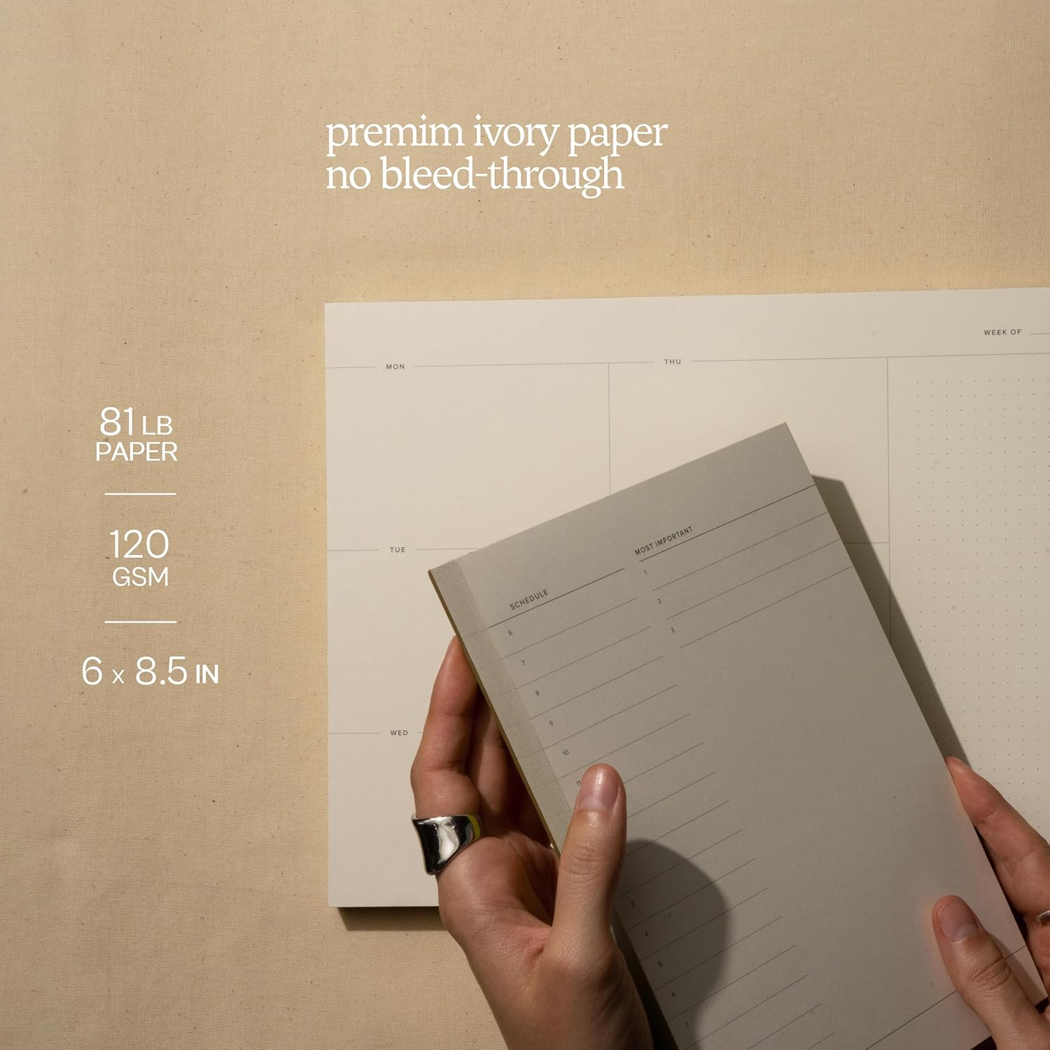 Daily and Weekly To-Do List Notepad – Desk Pad for Work and Study, Minimal, 8x6 Inches
