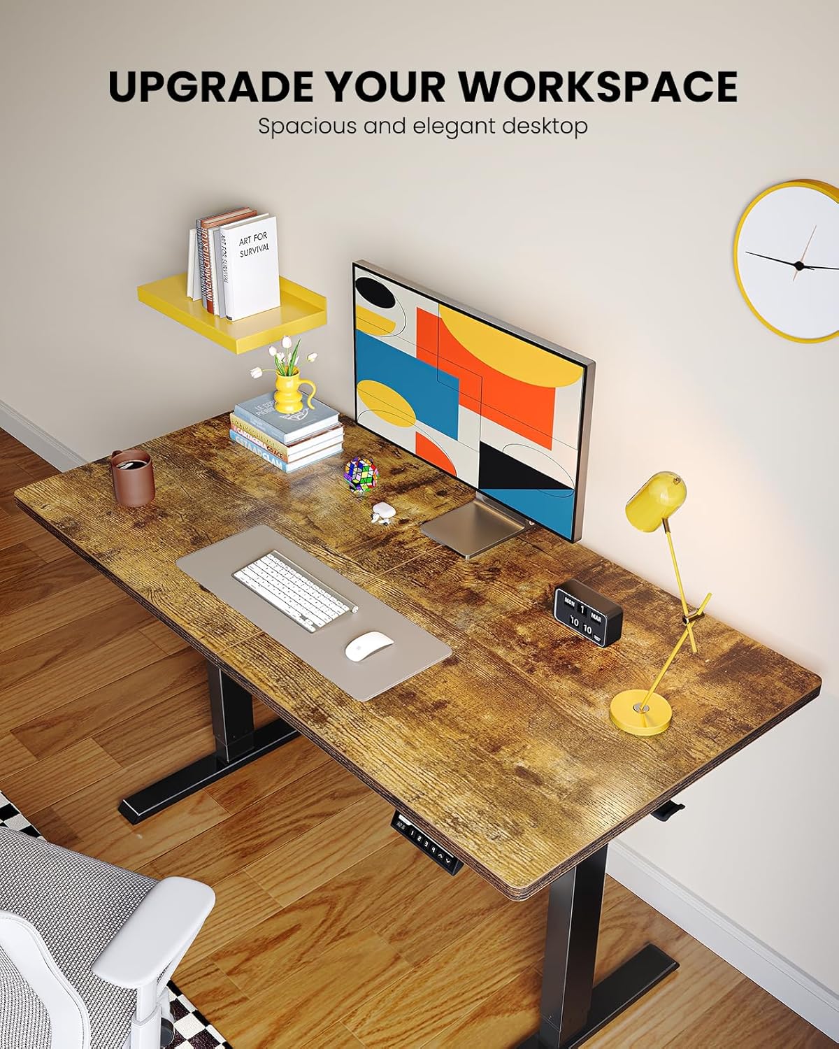 ErGear Electric Standing Desk, 55 x 28 inch Height Adjustable Sit Stand Up Desk, Computer Home Office Desk with 4 Memory Height Buttons, Two Pieces Desktop, Vintage Brown, EGESD112V