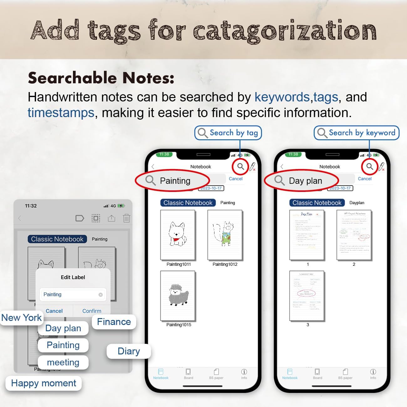 - 【Searchable Notes】 Your handwritten text is searchable! The smart pen's handwriting recognition software allows you to search for specific words or phrases or tag within your notes, making it easier to find that important idea or key detail.