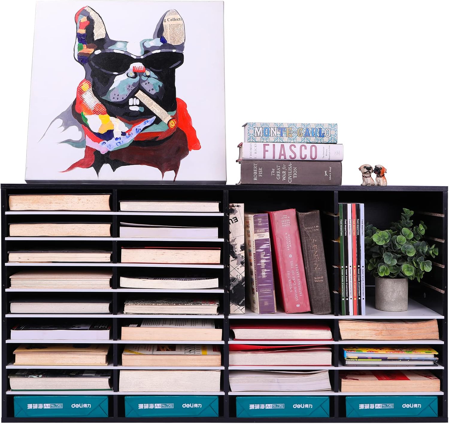 - Space-saving Storage Organizer: The literature organizer has a total of 36 slots. It can help you sort, store and organize literature, magazines, comic books, files, student assignments, binders, catalogs, diaries, papers and documents on your desk, counter or floor quickly and easily and get you valuable workspace back