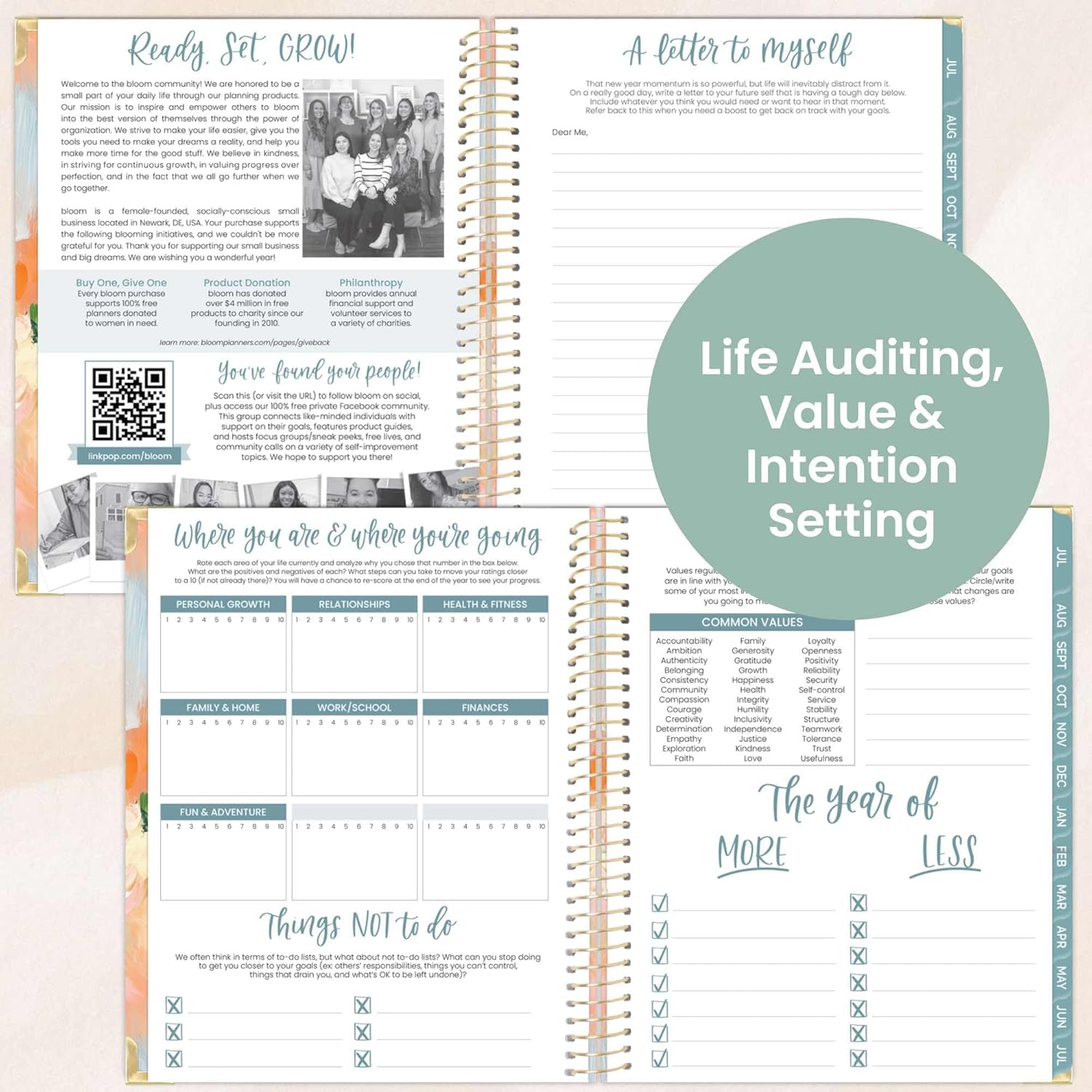 - THOUGHTFULLY DESIGNED FOR PERSONAL GROWTH: This agenda organizer includes life coaching worksheets and tools to help you bloom: a goal-setting page, weekly scheduling templates, annual habit tracker, monthly bill tracker, 13 note pages, inspirational quotes, monthly challenges, and more.