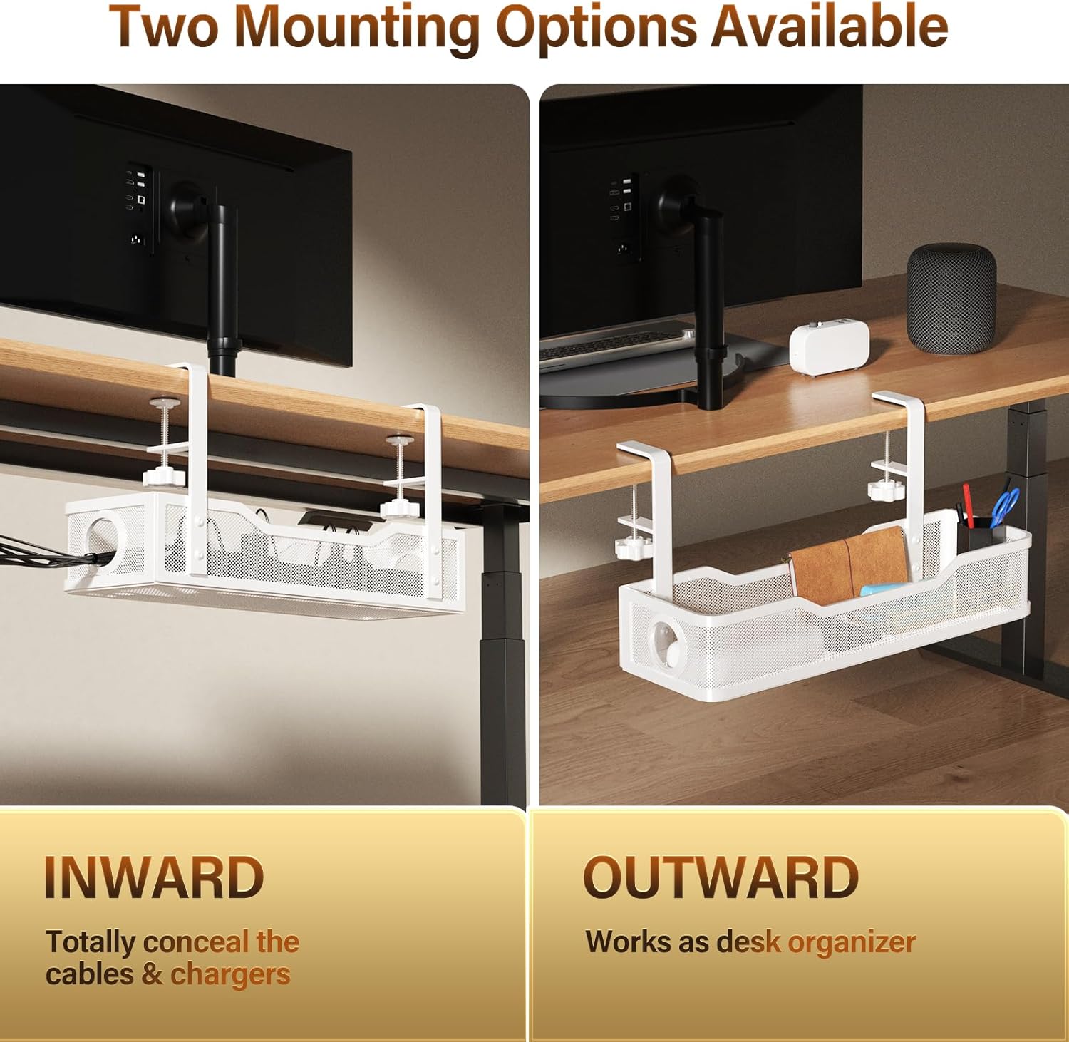 - No Need to Drill Holes - Instead of damaging your desk, our under desk cable management tray can be hung directly onto desk frames and adjust the position as easily as you like, unlike other screw installations.The wire management, following thorough welding and powder coating, offers resistance to rust and dust accumulation, ensuring dependable long-term use under the desk.
