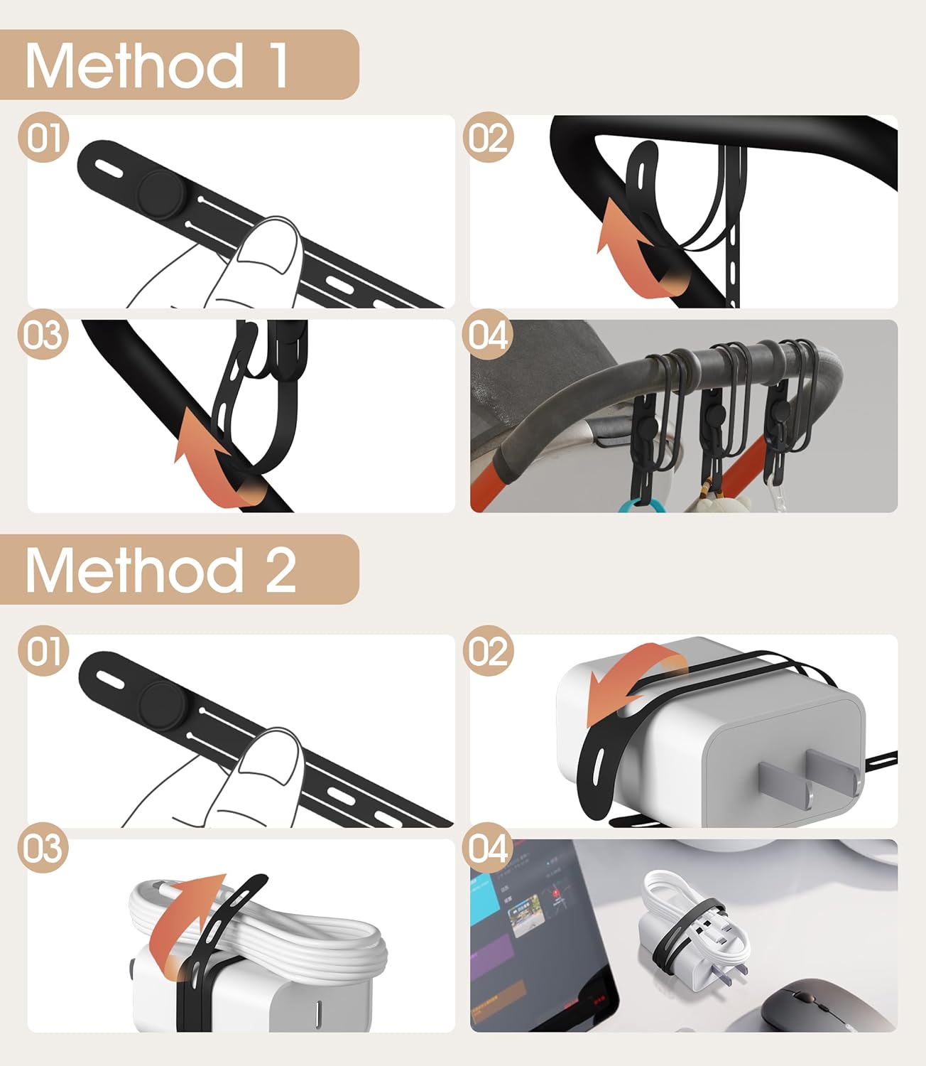 - 【The Latest Anti-lost Design】Are you still worried about messy cables? Ever held your charger and couldn't find the corresponding USB cable? This cable organizer can organize USB cables and matching chargers together, or it can organize two different types of cables at the same time. Fixing it on the cable can avoid loss and is convenient for use at any time