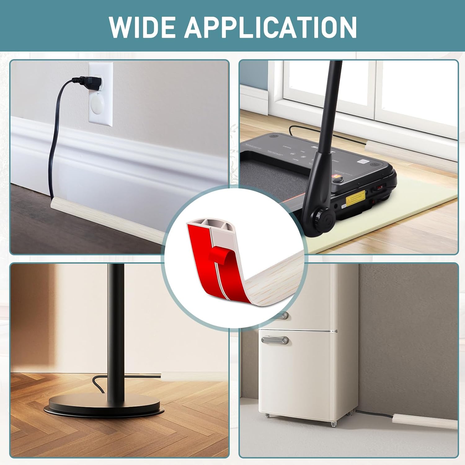 - Strong Adhesive Backing: The cord cover floor has a strong adhesive tape, making installation easy. Simply cut the desired length and place the wire in the channel. Peel off the film and stick it to any floor or wall edge, including hardwood floors, tiles, or carpets.