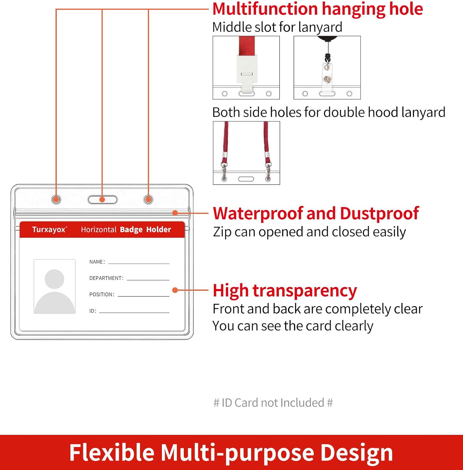 - Flexible Multi-purpose Design: Our clear ID card holder features a resealable zip, making it waterproof and dustproof, ensuring the safety and dryness of your cards and money. The dual-use hanging slot/holes design allows you to easily attach a badge lanyard, keychain, or retractable carabiner reel clip. The side holes can be used for attaching a strap, cord, string, or thread.