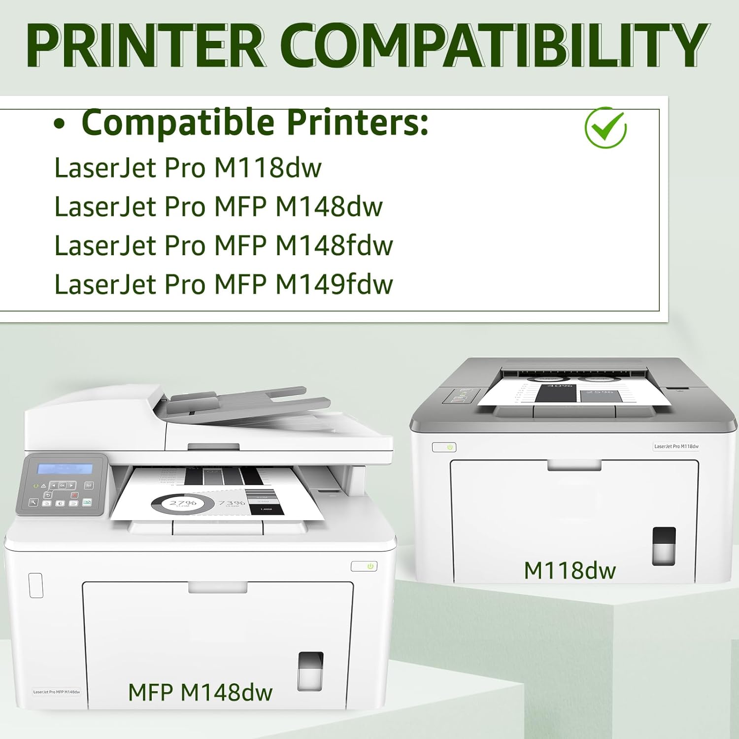 - Compatible for HP Printer: Pro M118dw; Pro MFP M148dw M148fdw M149fdw.