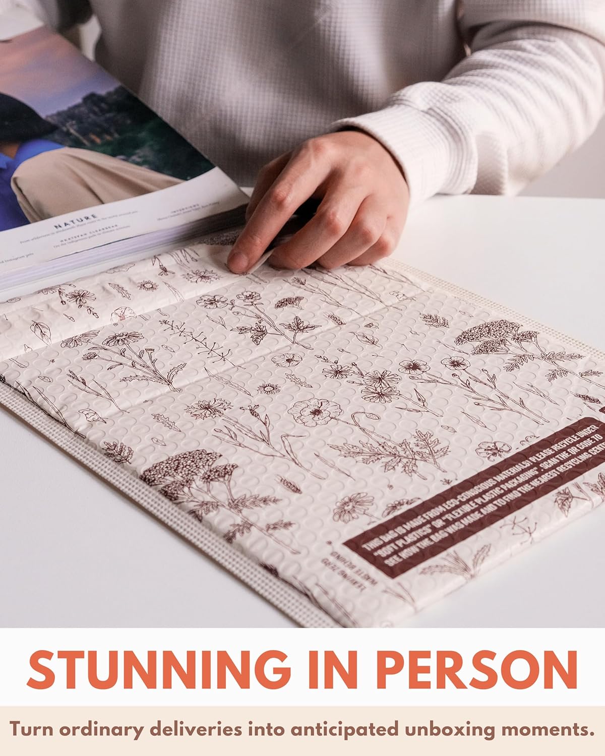 - Stylish Poly Mailers: Designer shipping envelopes featuring beautiful prints that complement your brand's aesthetics; create that perfect first impression with packaging that stands out