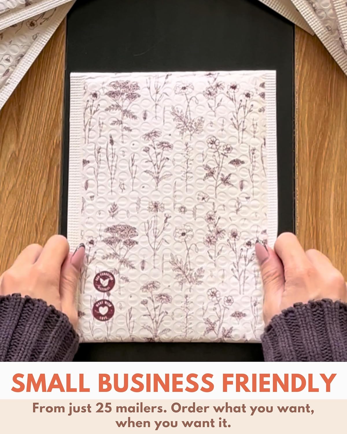 Bubble Mailers 6x9-25 Pack Biodegradable Shipping Bags for Stationery and Small Accessories - Impack Self-Seal Protective Thick Mailing Envelope for Small Items - Wildflower