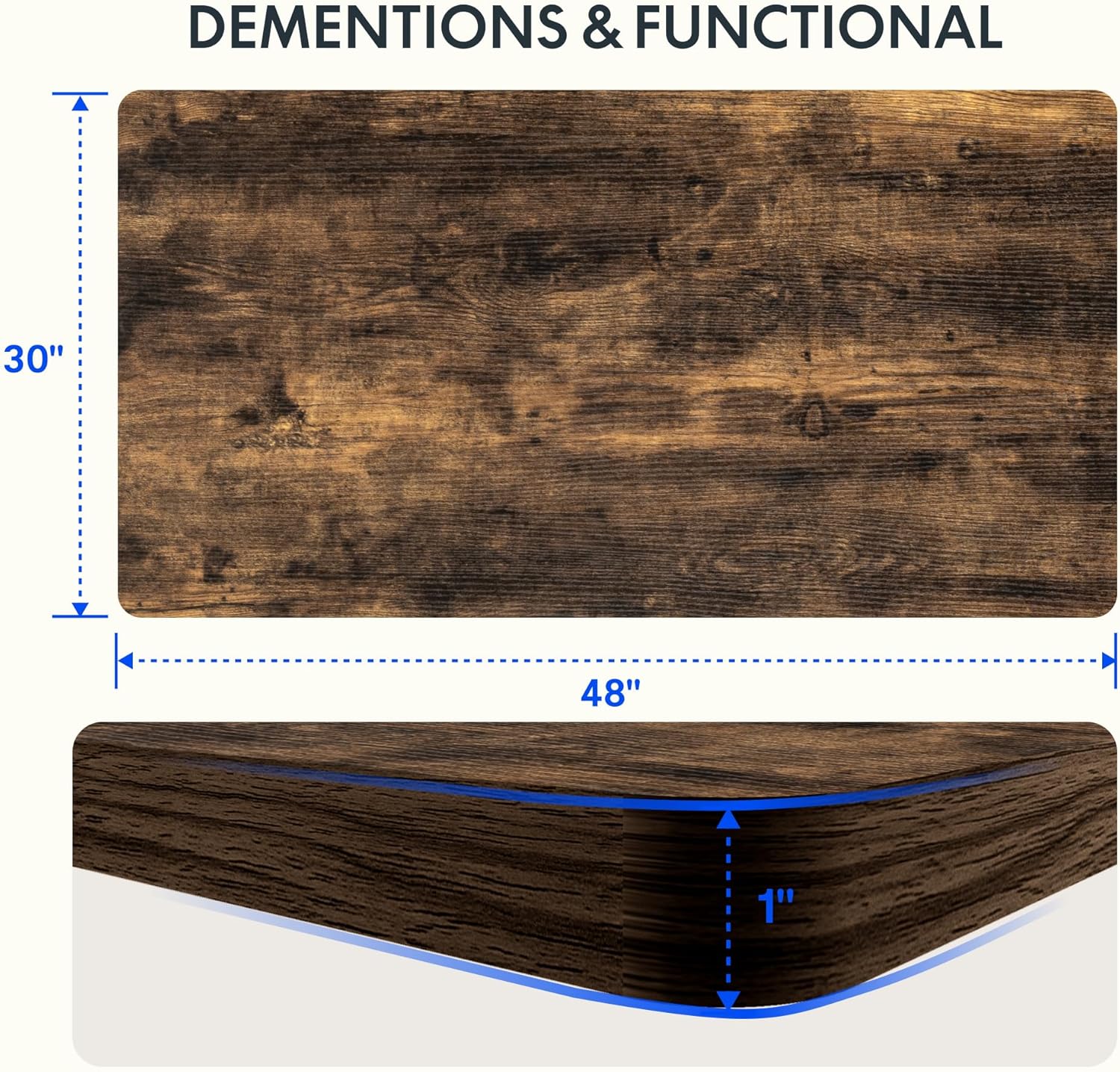 - AMPLE WHOLE-PIECE DESKTOP: With its whole-piece 1” eco-friendly desktop, this standing desk provides plenty of room for your computer setup, documents, and accessories, creating a well-organized and productive work environment. Due to hand measurements, desktop dimensions may vary slightly by 0 to 1”.