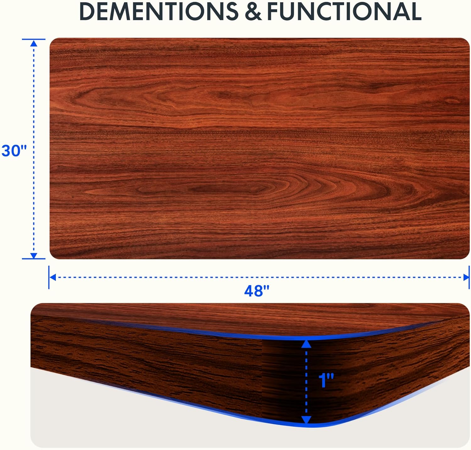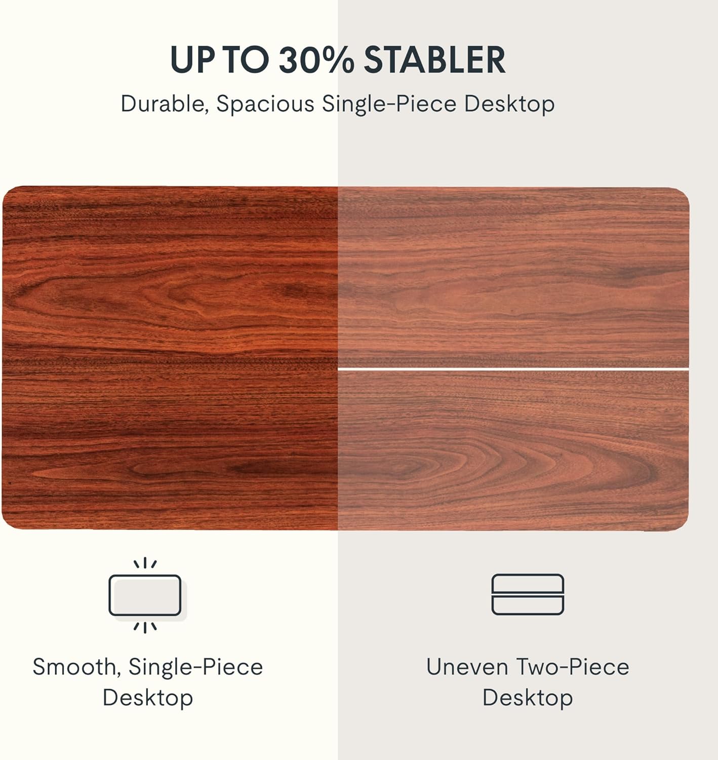 - AMPLE WHOLE-PIECE DESKTOP: With its whole-piece 1” eco-friendly desktop, this standing desk provides plenty of room for your computer setup, documents, and accessories, creating a well-organized and productive work environment. Due to hand measurements, desktop dimensions may vary slightly by 0 to 1”.
