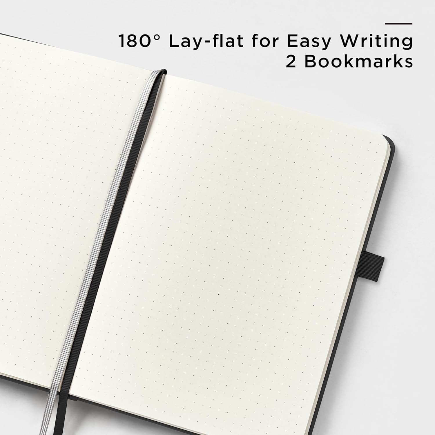 - 180° LAY-FLAT DESIGN: The lay-flat design allows for easy writing and ensures that you can utilize every page efficiently. Journaling, note-taking and planning has never been easier! 2 Bookmarks to help you find important content faster!