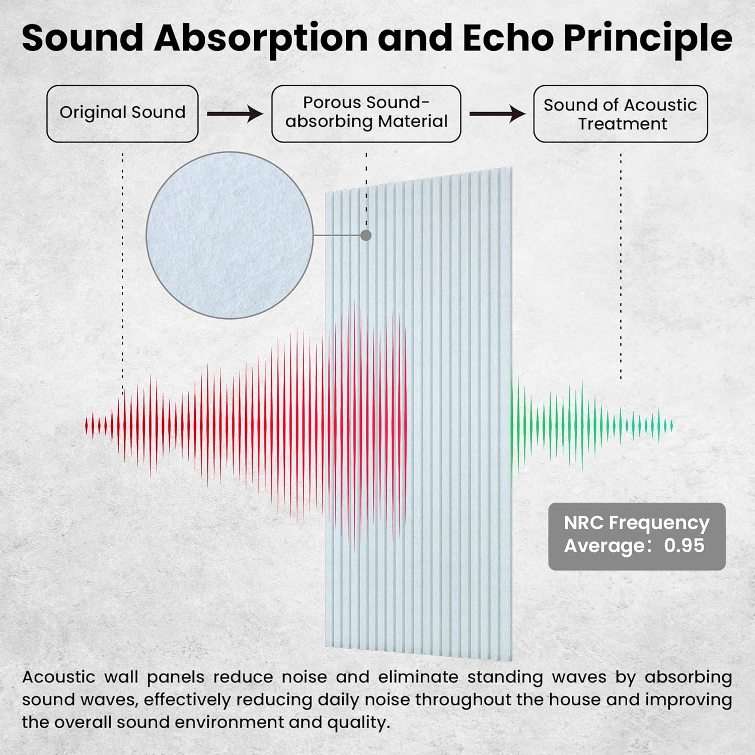 - 100% Polyester Fiber - The wall soundproofing panels is carefully made of 100% polyester fiber. Polyester fiber large acoustic panels have many advantages, such as excellent sound absorption, effective resistance to moisture and mildew, easy to cut,good stability, and has a high cost-effective.