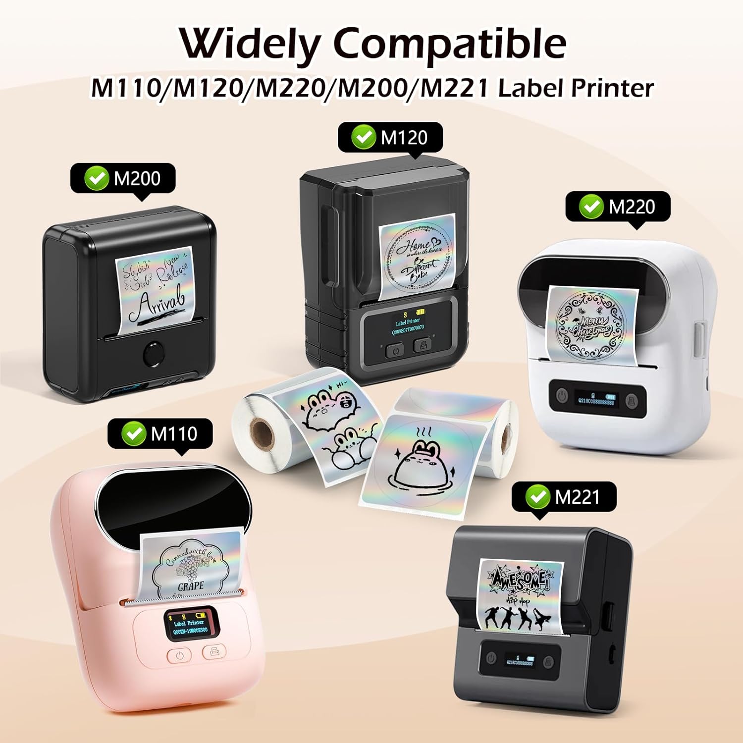 - STRONG COMPATIBILITY:Thermal label stickers can be printed using a thermal printer. It is fully compatible with Phomemo220/200/221/120/110, MUNBYN 941B/130B/RW402B and other direct thermal printers.(Not compatible with Brother and Dymo)