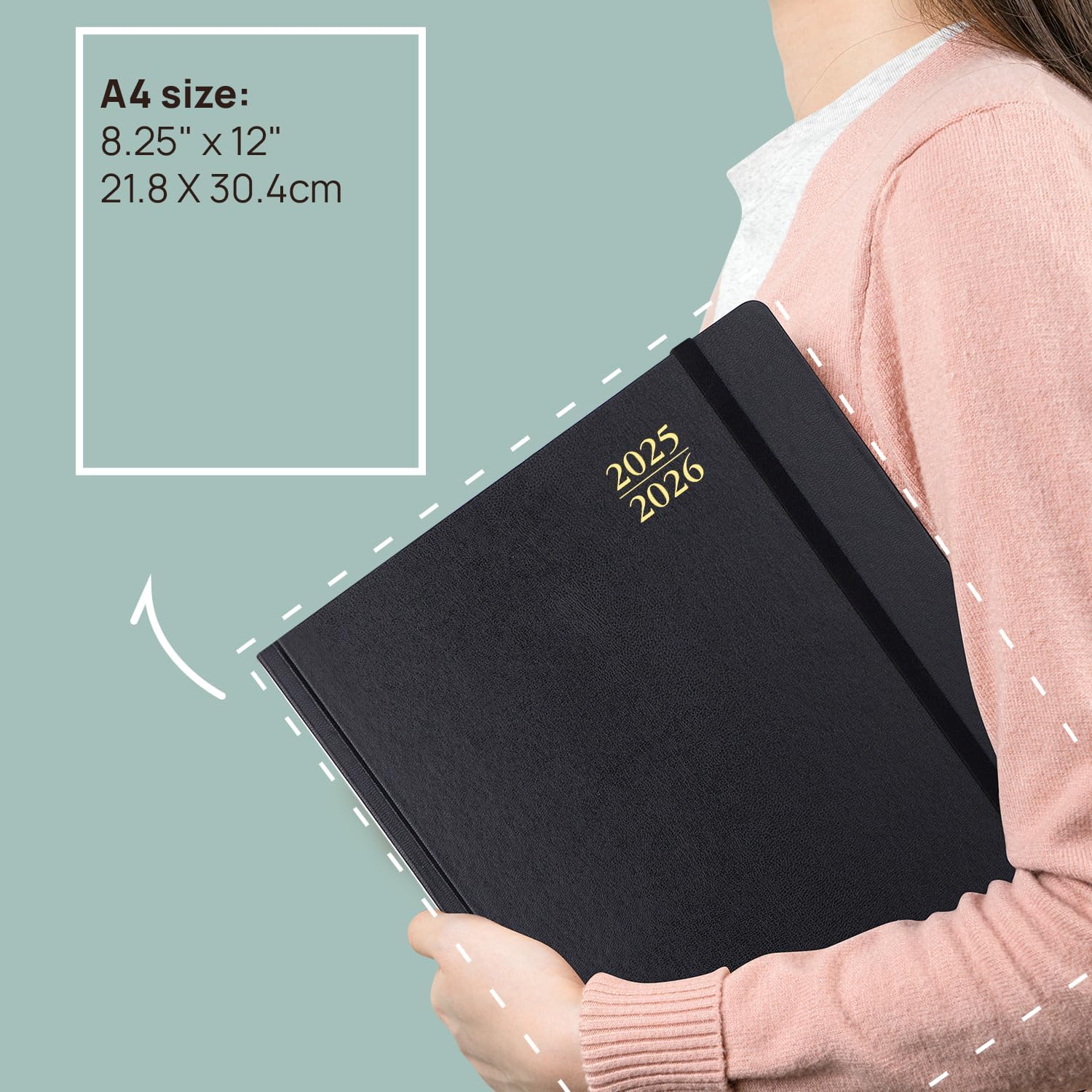 - A4 LARGE SIZE - This 2025-2026 daily planner features an A4 size, measuring 8.25" x 12". It is slightly smaller than a 14" tablet, providing ample space for detailed writing and planning. This generous size ensures that you have enough room to organize your busy daily routines with ease.