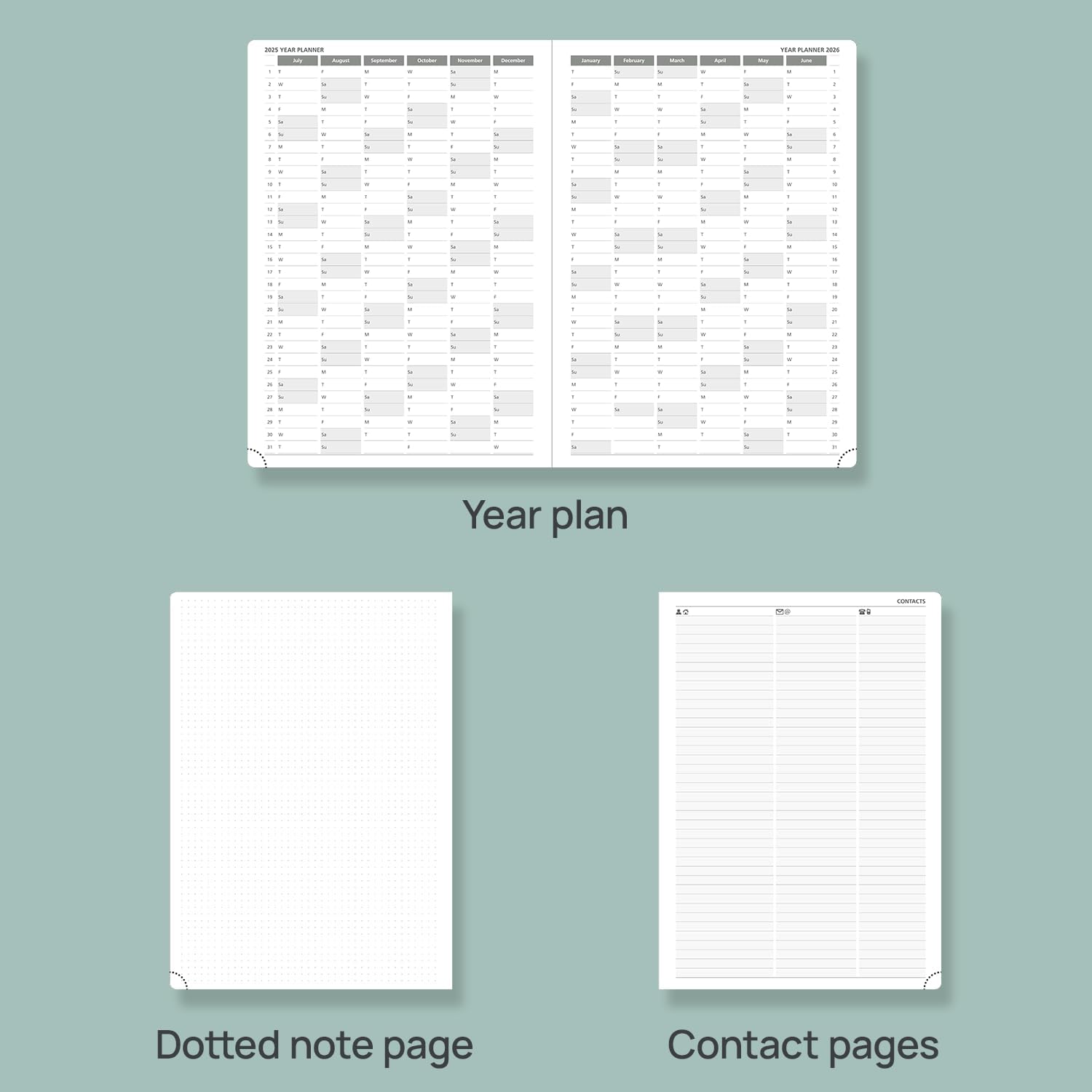 - EXTRA PAGES - This 2025 daily planner also contains "2025-2026 Yearly Overview" Page + "2025-2026 Holiday & Calendar" Page + 3 Contact Pages +3 Password Page + 13 Dotted Notes Pages for jotting down your ideas, thoughts or any other happy things in detail.