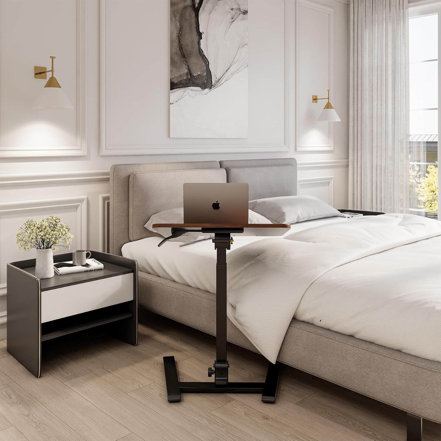 - | Long-Lasting Rolling Desk | - Designed with 4 hidden wheels, it allow you to move the desk to everywhere of your home easily. This movable desk is also good for using with treadmill walking pad. Alawooder only produces products with premium qua1ity. All the defective products will not be on your hand! Choose Alawooder means to choose premium qua1ity for years! We won't let you down!