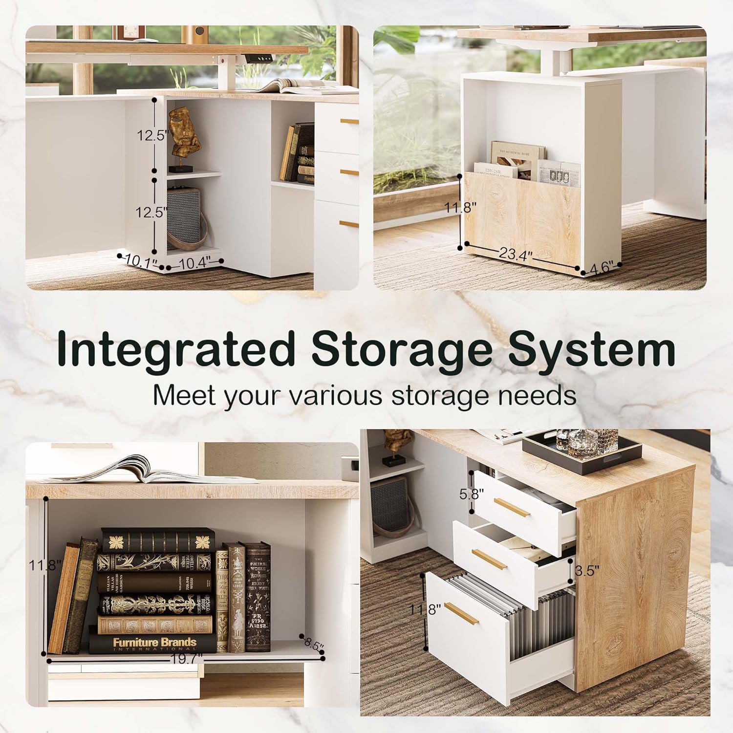 - Powerful Storage System:This lifting executive desk contains a 3-drawer cabinet part, and there is also storage space in its lifting column part where you can place office necessities or decorative items
