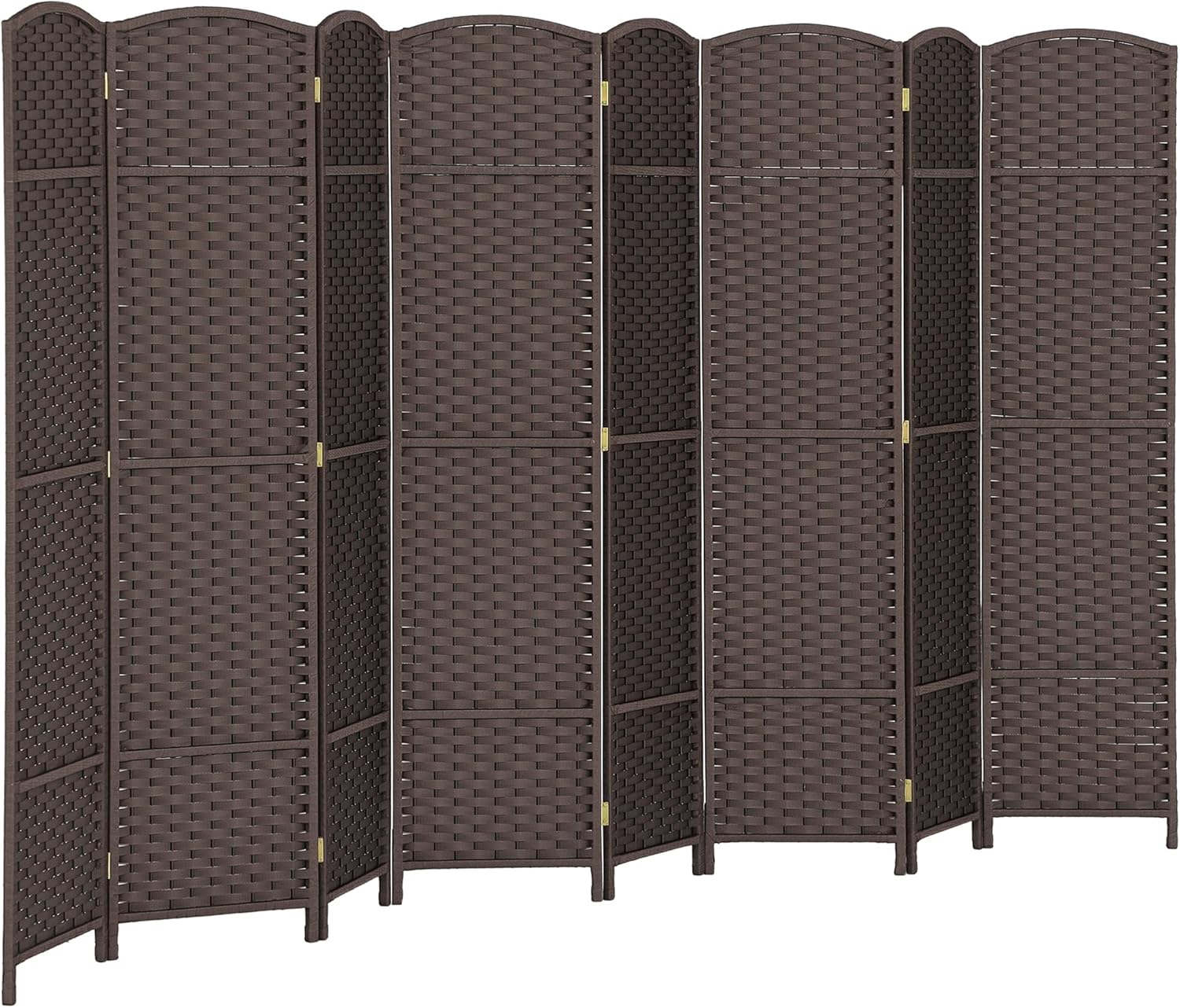 HOMCOM Room Divider, 8 Panel Folding Privacy Screen, 5.6' Tall Freestanding Wall Partition for Home Office, Bedroom, Brown