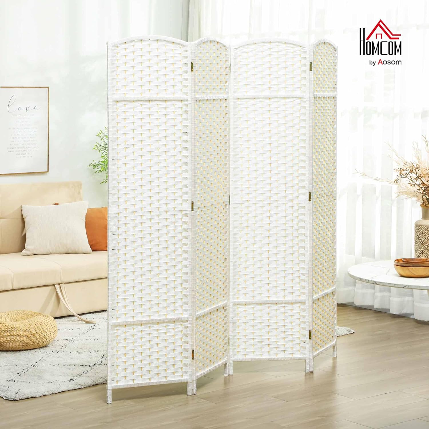 HOMCOM Room Divider, 4 Panel Folding Privacy Screen, 5.6' Tall Freestanding Wall Partition for Home Office, Bedroom, White