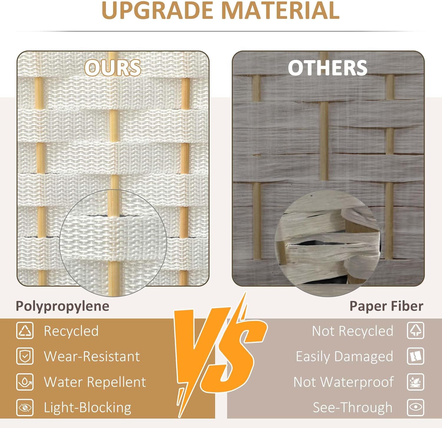 - Quality Material: Our room divider wall is made from a pine wood frame for sturdiness and polypropylene webbing for superior privacy and durability. It outperforms traditional paper fiber panels and their issues with separation and gaps.