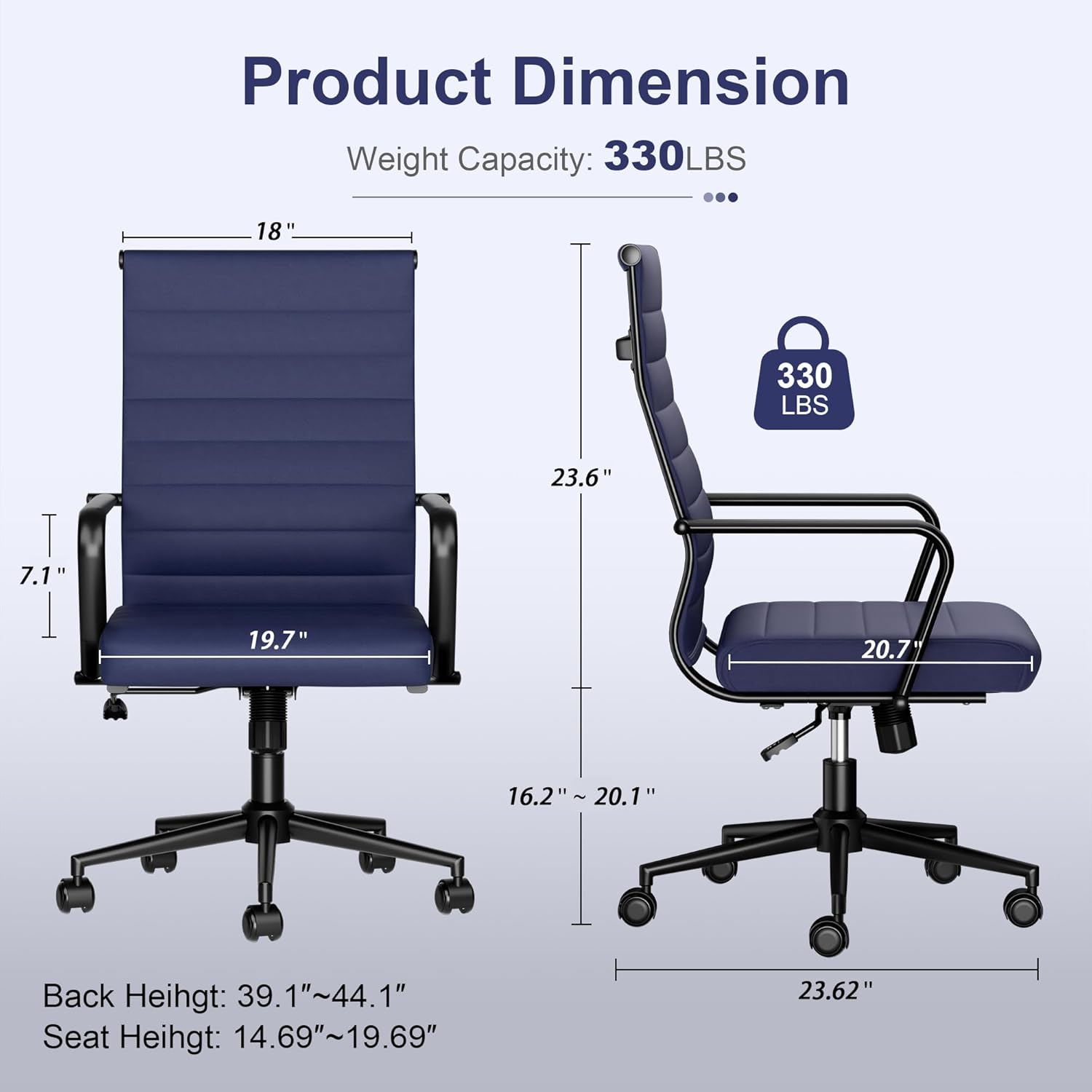 - 【Stable & Flexible】Sturdy framework with 330lbs weight capacity along with five-star base ensures it’s stability. Meanwhile, 360 degree swivel along with durable and smooth casters ensures extra flexibility and durability.