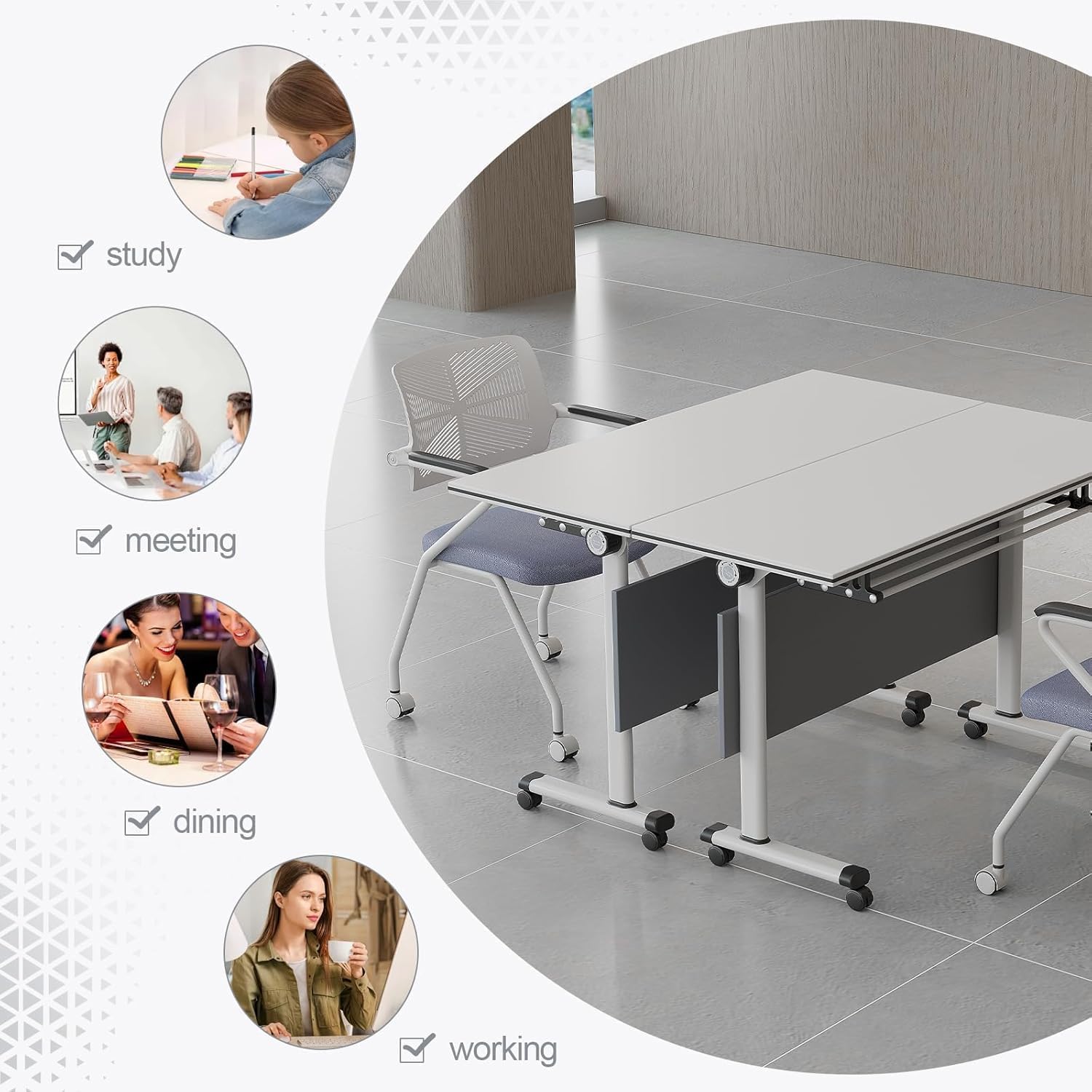 - ✅【WIDE APPLICATIONS】 The combination of modern design and clean lines allows this folding meeting table to blend in with any décor. It brings a touch of elegance and glamor to your space. This seminar table can not only be used as a conference table, reception table, office desk, training table, but also as a home computer table.