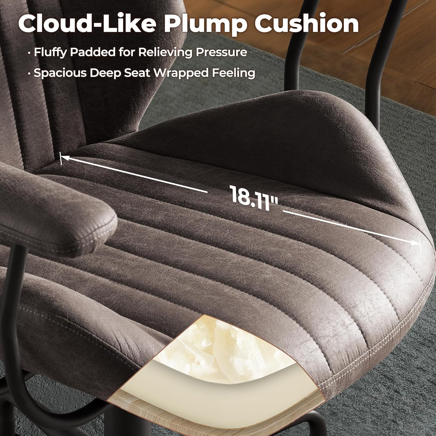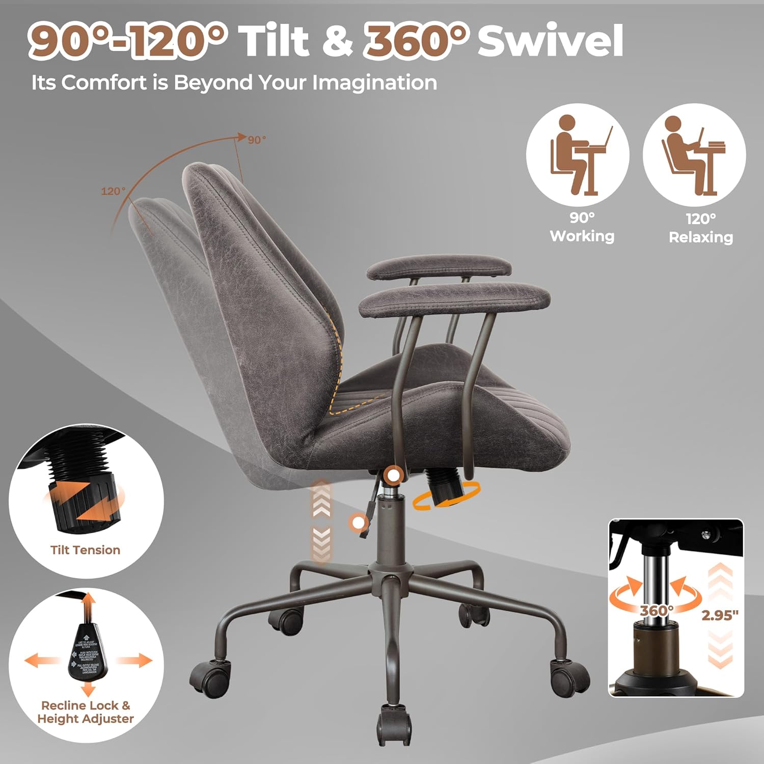 - Sturdy Construction: This padded task armchair features strong metal frame, curved backrest brackets that follow the curve of the human spine for stress relief, tested adjustment mechanisms and gaslift for stability even for tall and strong people, and high-quality 360° swivel rolling rotating casters avoid scratching the floor, can support up to 300 lbs. Whether you're working or relaxing, this modern chair offers a comfortable experience