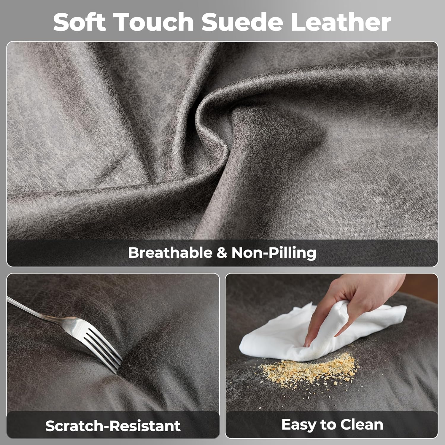 - Soft Touch Leather Fabric: Exquisite and luxurious soft faux leather fabric offers constant softness and comfort, with its unique texture and luster standing out. Featuring breathable, durability, smoothly, scratch-resistant, pet-friendly, non-pilling and easy to clean