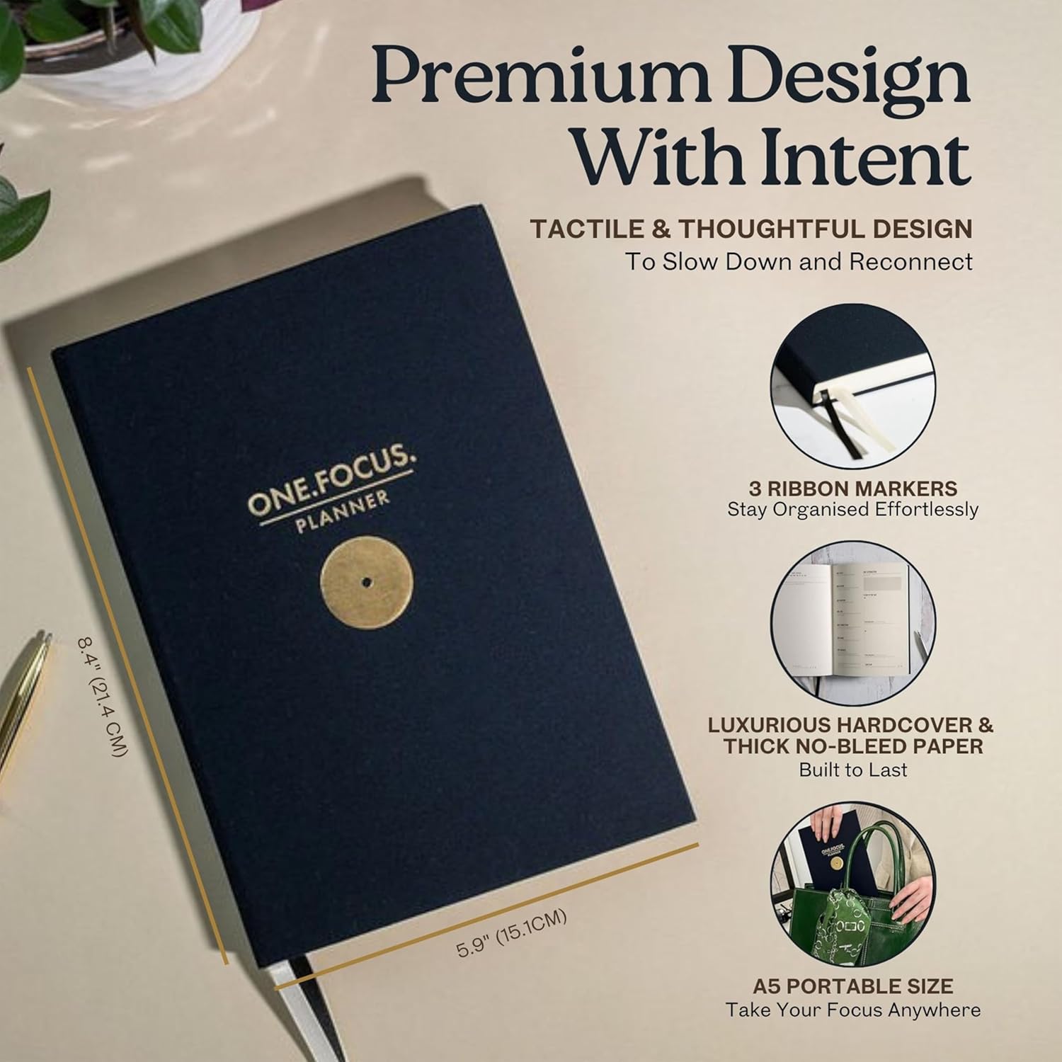 One Focus ADHD Daily Planner: 90-Day Undated Productivity Journal, Anxiety Relief, Mindfulness, Goal Setting, Gratitude, and Habit Tracking โ Perfect for Busy Professionals, Neurodivergent Adults & Daily Productivity, A5, Black