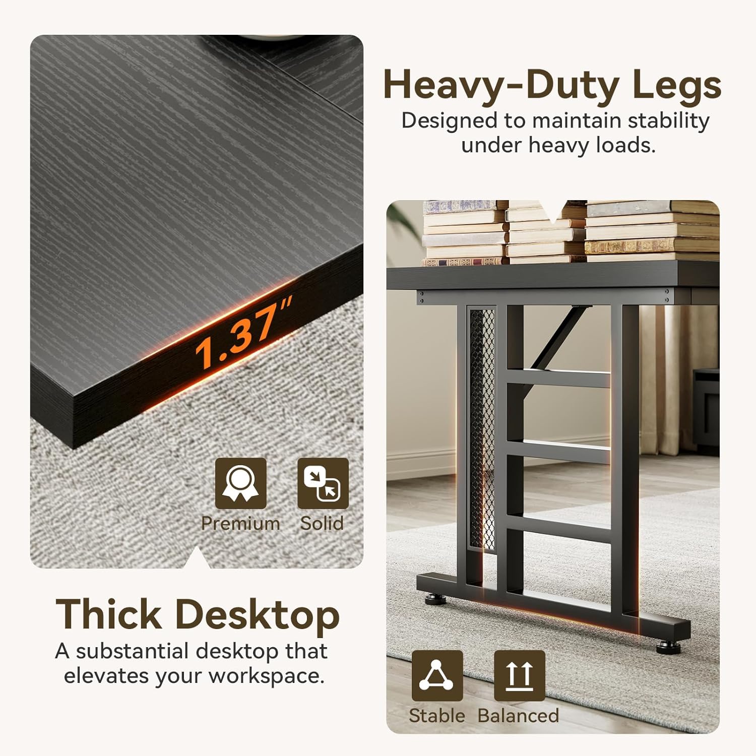 - 【Heavy-Duty, Sturdy Desk Frame for Durability】Built with a 1.37-inch thick engineered wood surface, this desk offers exceptional strength. The reinforced steel frame supports multiple monitors, printers, or heavy equipment. Adjustable leg pads keep your desk steady on uneven floors, ideal for home or writing desks.