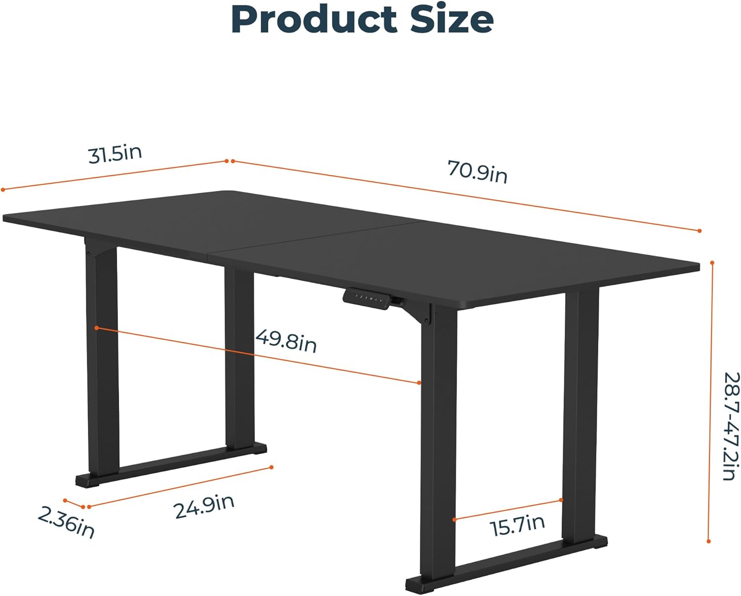 4 Legs Standing Desk, Large 71x31 Inches Electric Adjustable Height Desks with Splice Board, Stand Up Desks Home Office Computer Workstation, Black