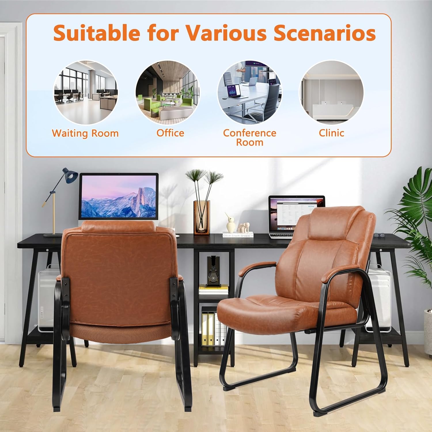 CLATINA Big & Tall 500 lb. Guest Chair, PU Leather Office Reception Chairs with Sled Base, Desk Chair No Wheels for Waiting Room Conference Lobby Computer Living Room, Brown, 2 Pack